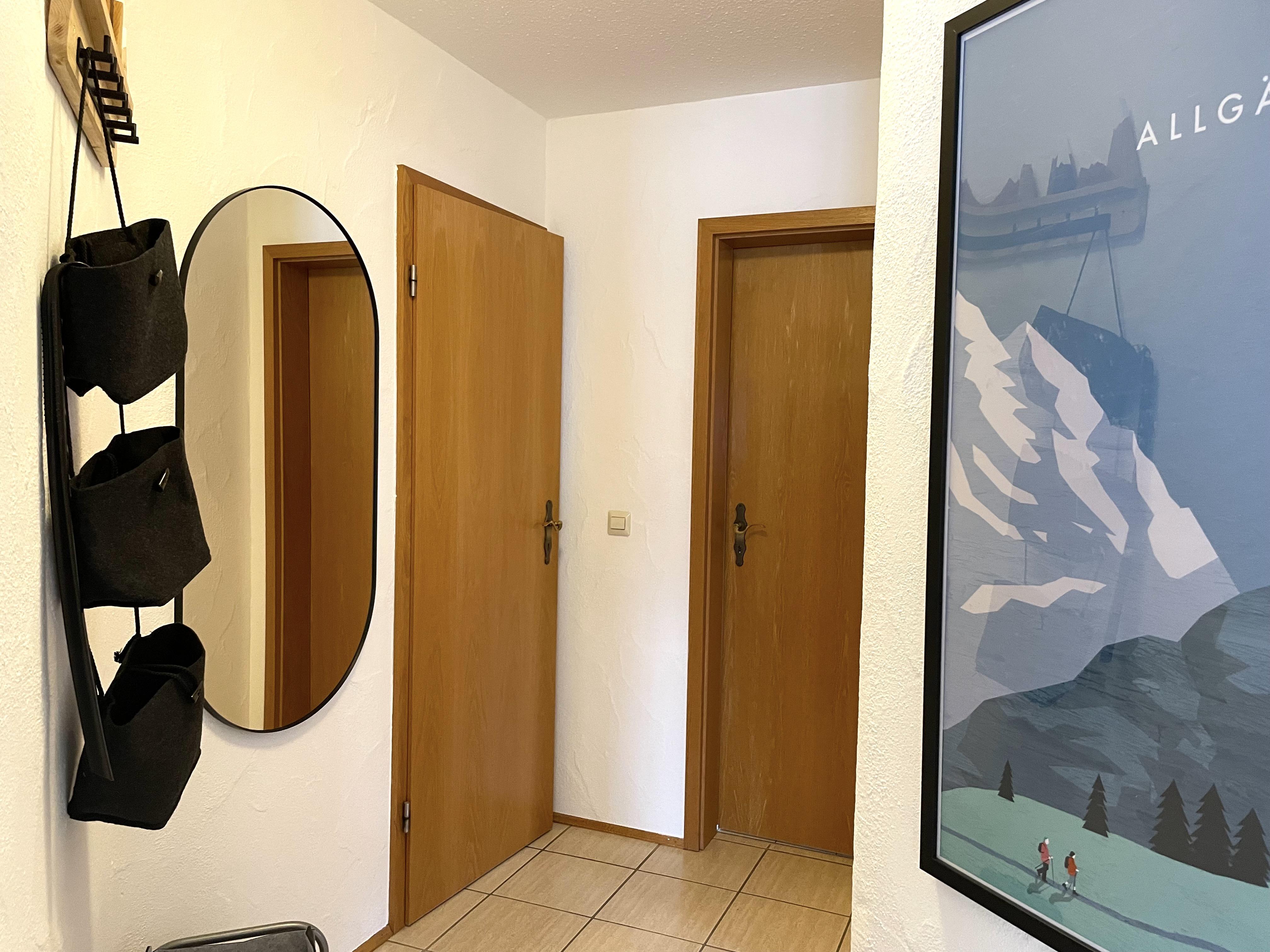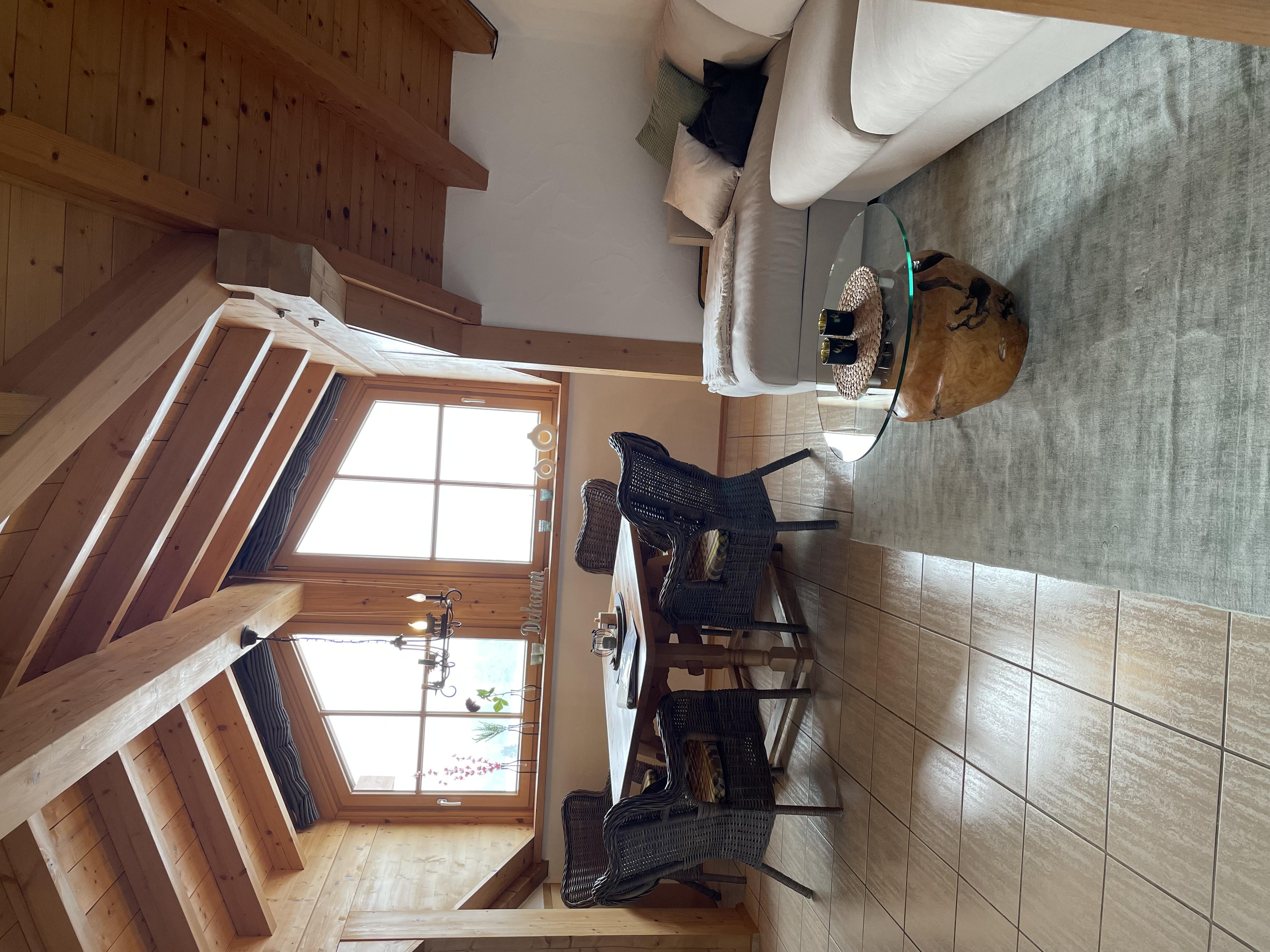 THE VIEW - Fewo Rubihorn Die 61m² große Wohnung Rubihorn im 1. OG besteht aus einem Wohn-/Essbereich mit voll ausgestatteter Küche, sowie einer gemütlichen (Schlaf-)couch & zwei Ohrensesseln, von denen ihr einen wunderschönen Blick in die Berge genießen könnt. Über einen Flur gelangt ihr ins Schlafzimmer, Badezimmer mit Dusche/WC und das separate WC.