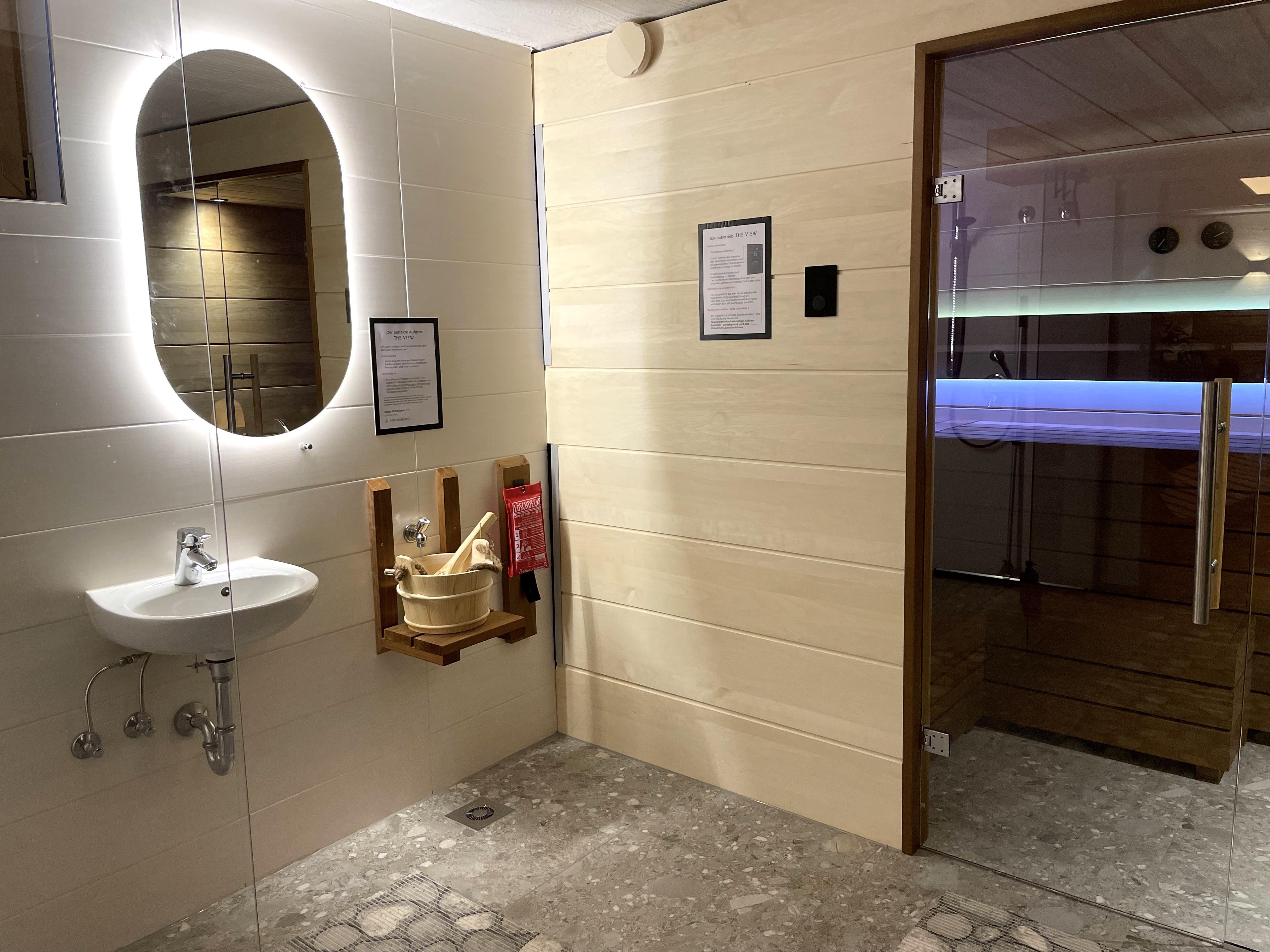 • Fitness (gratis) und Sauna (gegen Gebühr)