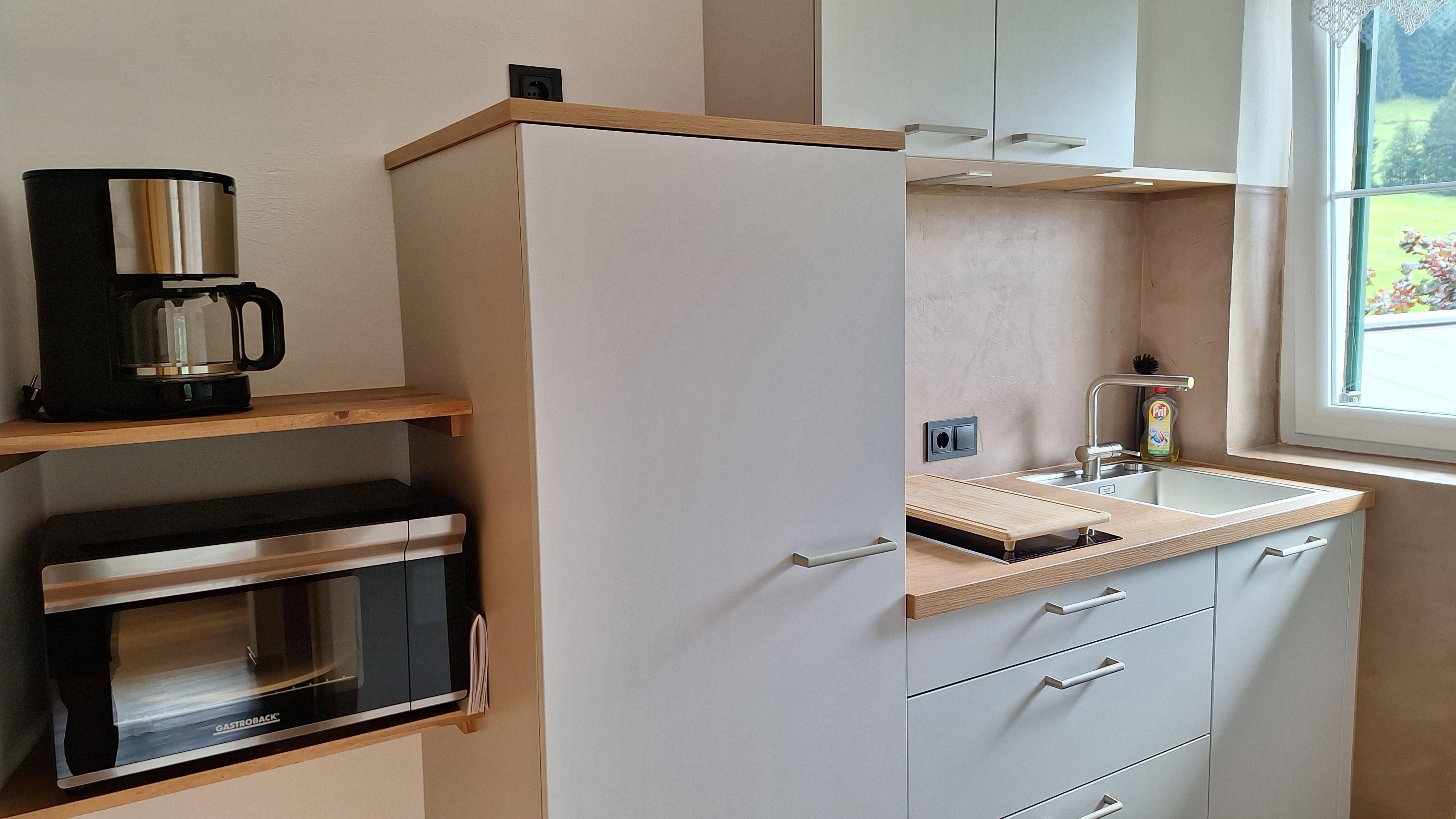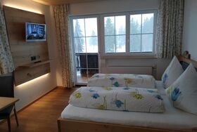 Unsere neu renoviertes Appartement Fuchs freut sich auf Sie! Es befindet sich in der Ersten Etage mit einem großen Südbalkon der den Blick auf die Berge freilegt. Das Appartement ist mit einem kombinierten Wohn- Schlafraum mit einer gemütlichen Sitzecke und Doppelbett ausgestattet. Eine kleine Küche befindet sich ebenfalls im Appartement. (Kühlschrank, 2 Herdplatten, Waschbecken) Das Badezimmer ist mit einer Dusche/WC und Föhn ausgestattet. Bettwäsche und Handtücher liegen für Sie bereit. Gerne können Sie unseren Brötchen- bzw. Getränkeservie nutzen.