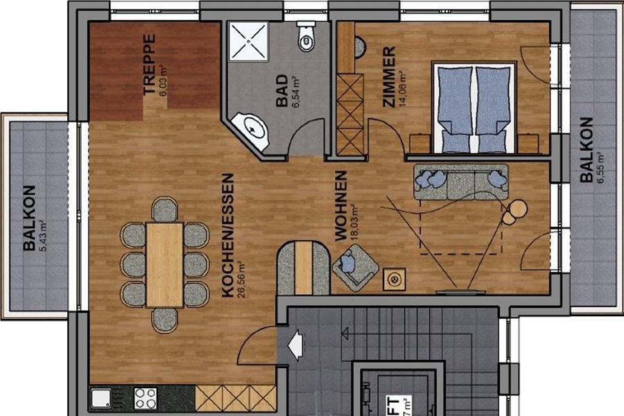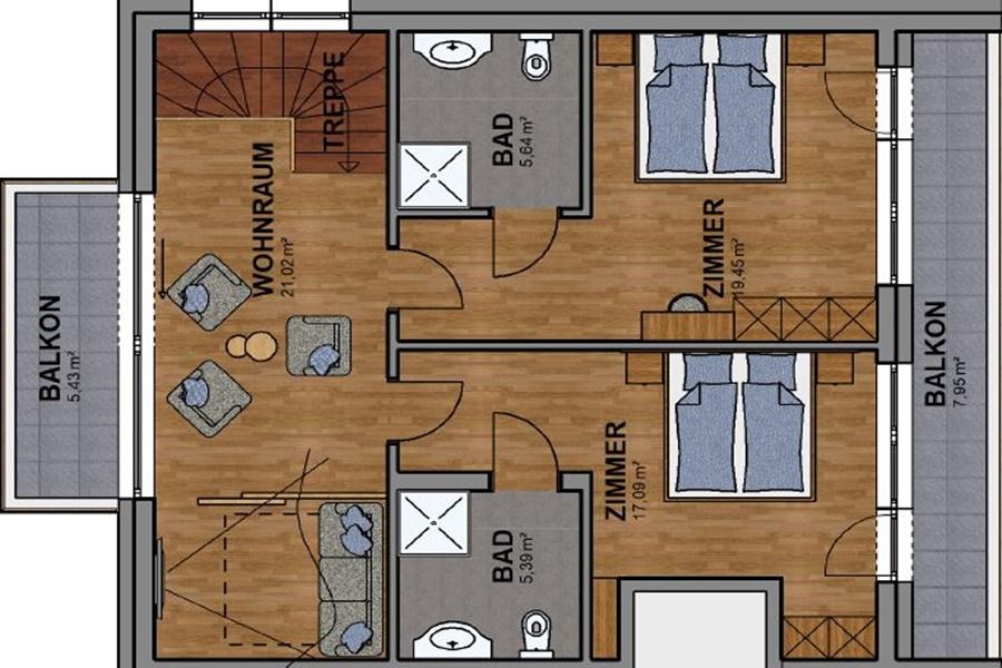 Top 6 - Chalet über 2 Stockwerke mit 4 Balkone und ca. 139 m²:
