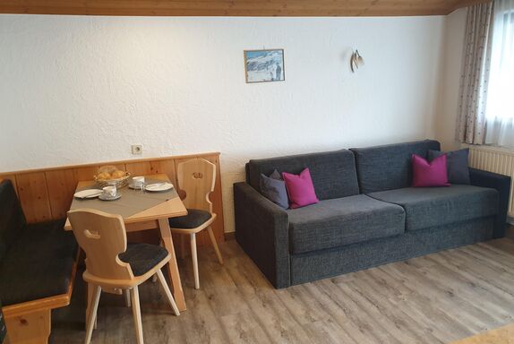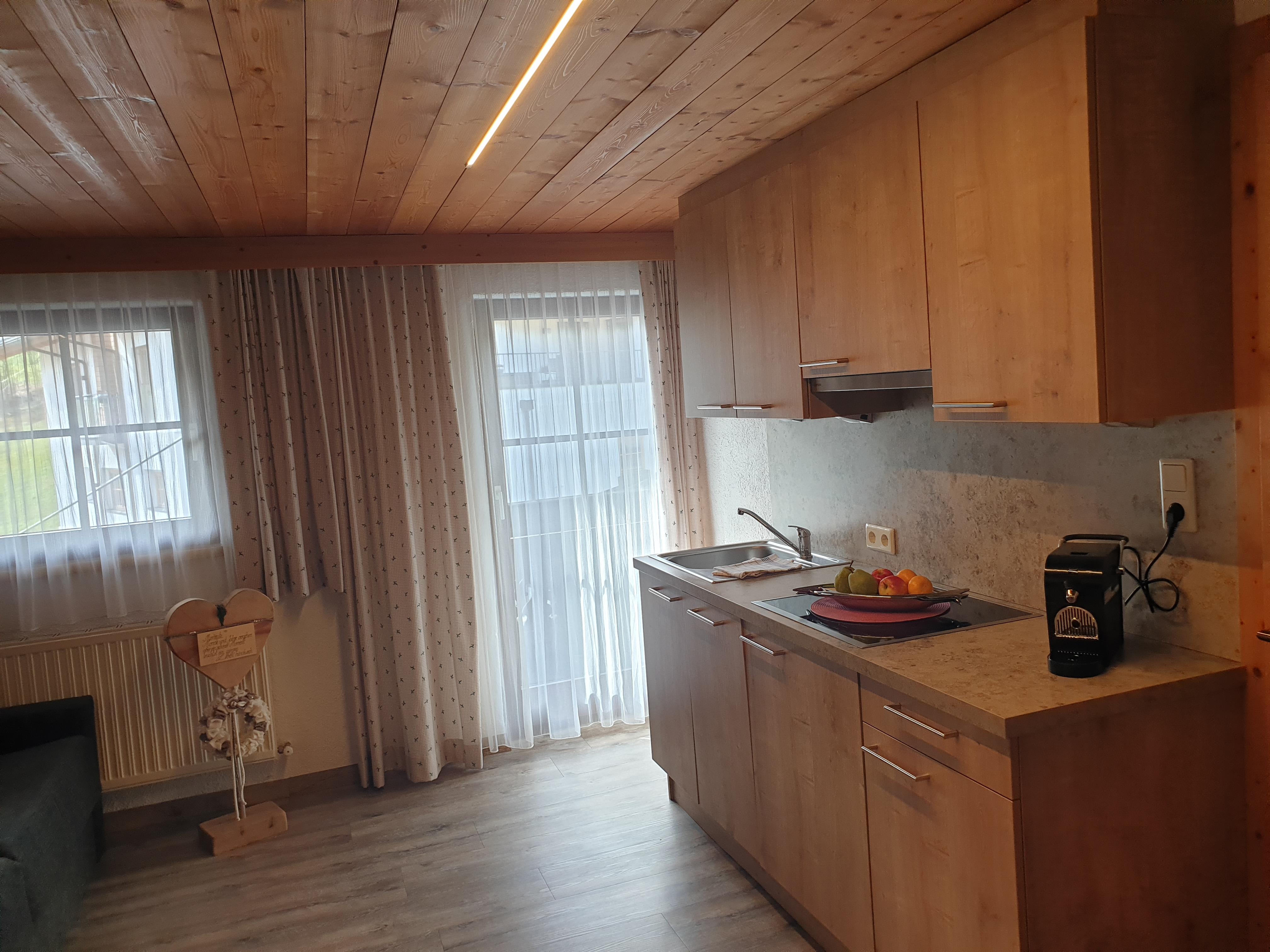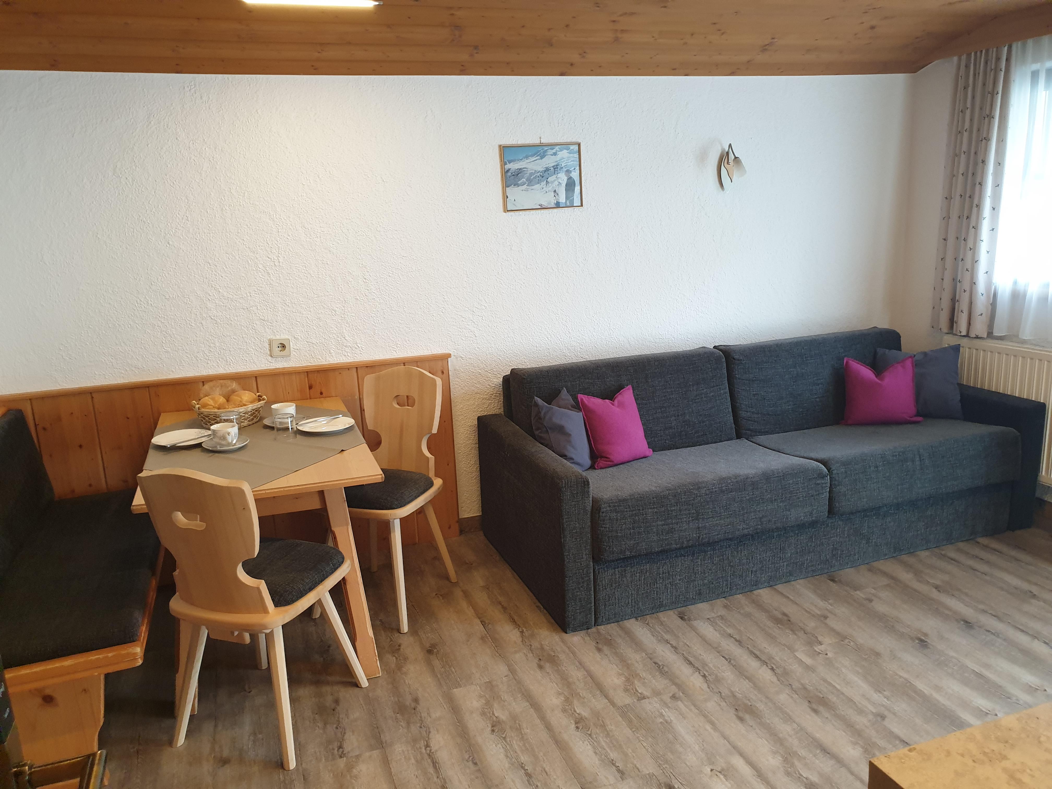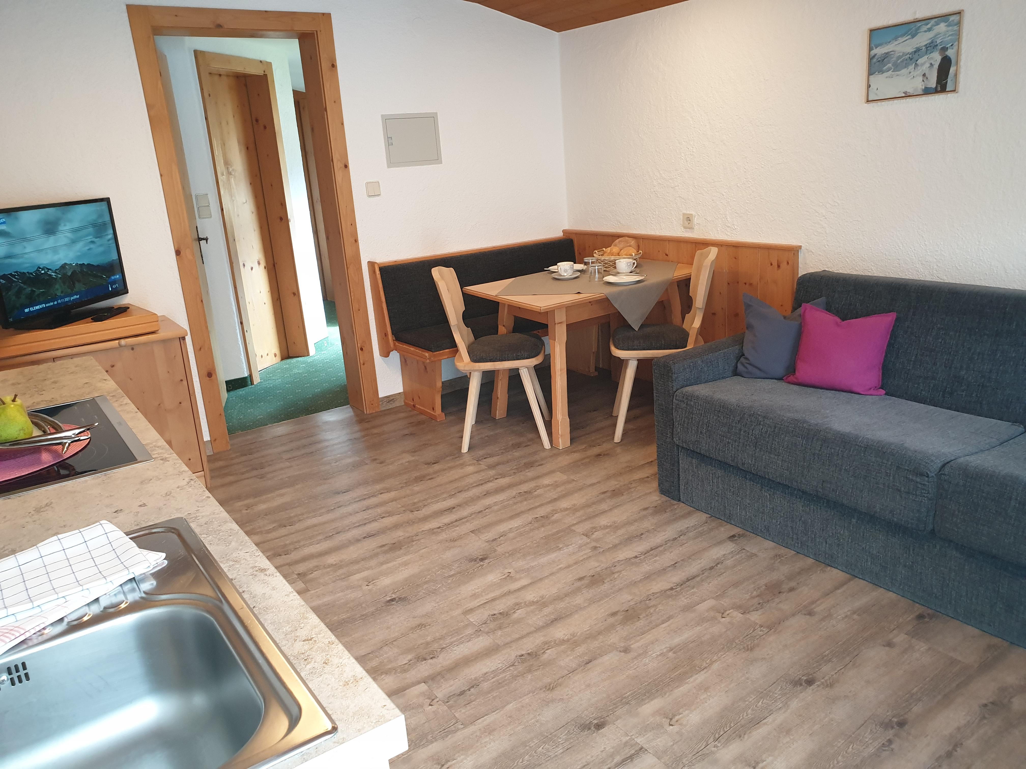 Gemütliches Appartement im 2. Obergeschoß mit viel Holz ausgestattet. Das Appartement verfügt über ein Schlafzimmer mit Doppelbett, Wohnküche mit Schlafsofa für die 3. Person und einer vollausgestatteten Kochecke mit Cerankochfeld, Kühlschrank, Spülmaschine, Kaffeemaschine, uvm; 1 Badezimmer mit Dusche, 1 separates WC, W-LAN kostenlos, Kabel-TV und Balkon nach Süd-Süd/West. Größe: ca. 33 m²