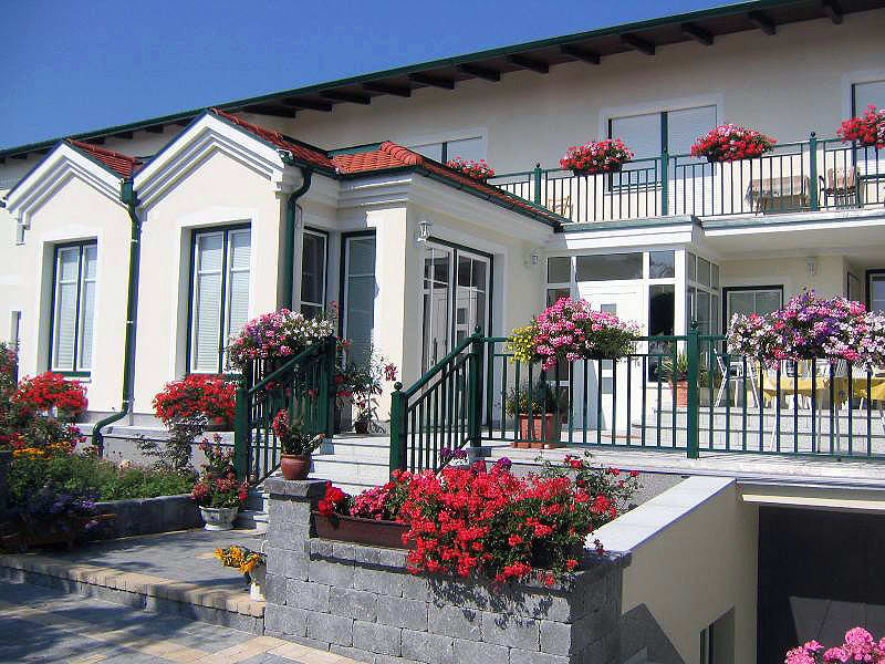 Genießen Sie den Ausblick auf eine herrliche Landschaft am Rande des Neusiedlersees, bei einem Glas Wein auf Ihrem Balkon oder von unserer großen blumengeschmückten Terrasse aus.