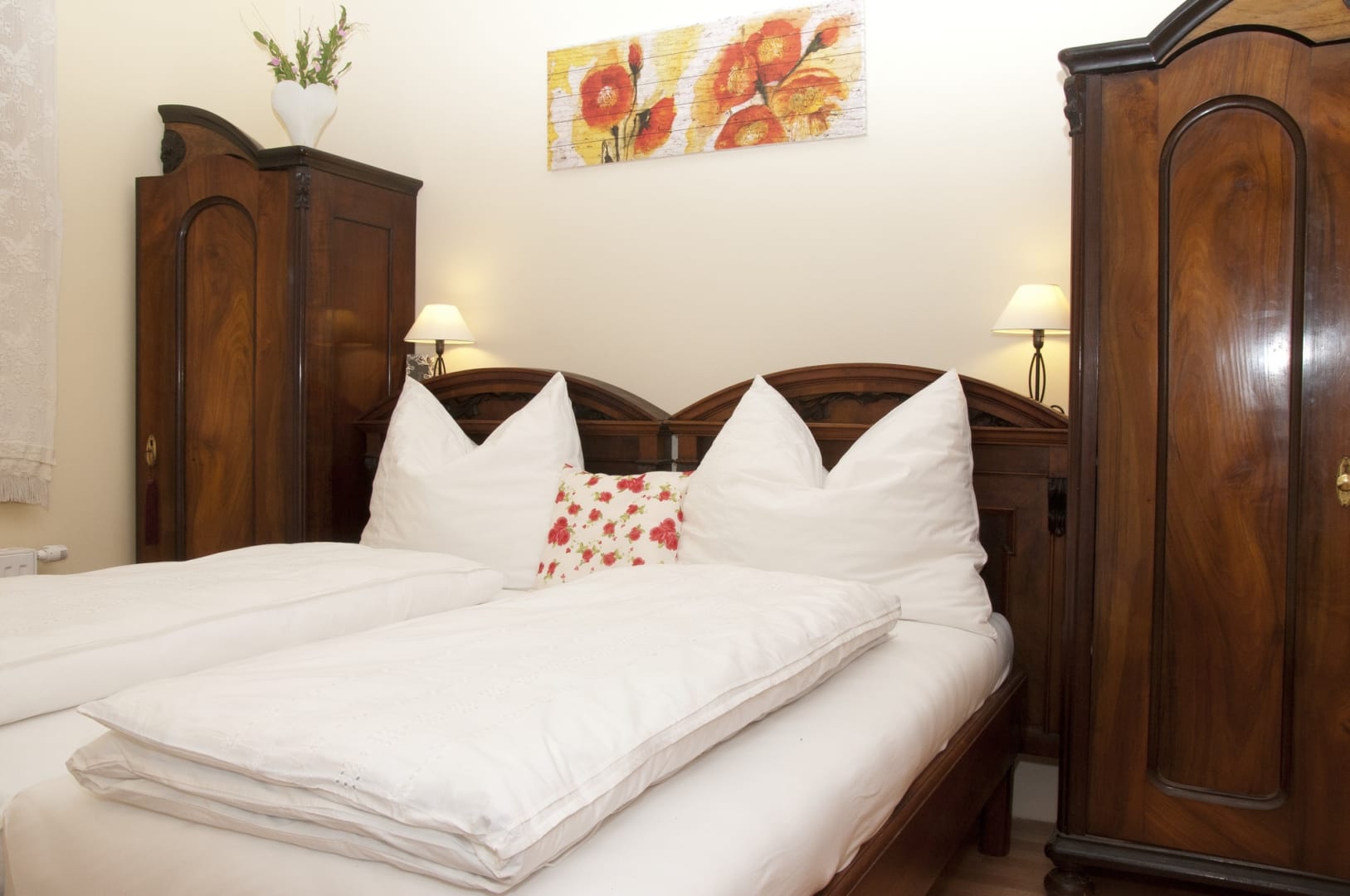 Unsere neu errichteten Apartments sind mit wunderschönen Naturholzmöbel ausgestattet und haben den Reiz, frühen, romantischen Zeiten. Die mit viel Liebe ausgesuchten Accessoires, laden zum Träumen ein. Ebenso die ruhige Lage, mitten im schönen Blumendorf.Die Ferienwohnung verfügt über eine Klimaanlage, sowie einer dazugehörigen Terrasse.