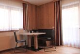 Gemütliches Appartement aus Lärchenholz: 1 Doppelzimmer mit großem Doppelbett, Badezimmer mit Dusche/WC und Föhn. Wohnküche mit einer vollausgestatteten Küchenzeile mit 2-Platten-Cerankochfeld, Kaffeemaschine, Kühlschrank uvm., Essplatz, Sitzecke, Flat-TV (SAT), Radio, Ausziehcouch für eine weitere Person zum Schlafen und Balkon; Größe ca. 30 m²