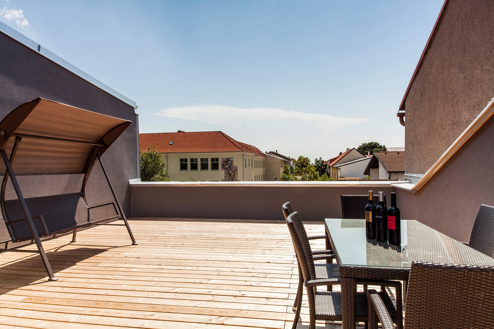 Unser Feriendomizil liegt im Zentrum von Gols. Die Marktgemeinde Gols ist am Rande des Neusiedler Sees, umringt von wunderschönen, sanften Weinbergen. In exklusiv ausgestatteten Suiten können Sie Ihre schönsten Tage des Jahres in vollen Zügen genießen. Nach einer ausgiebigen Radtour, oder einer Wanderung, verwöhnen wir Sie mit einem Glas Gsellmann Wein im romantischen Garten des Innenhofes.