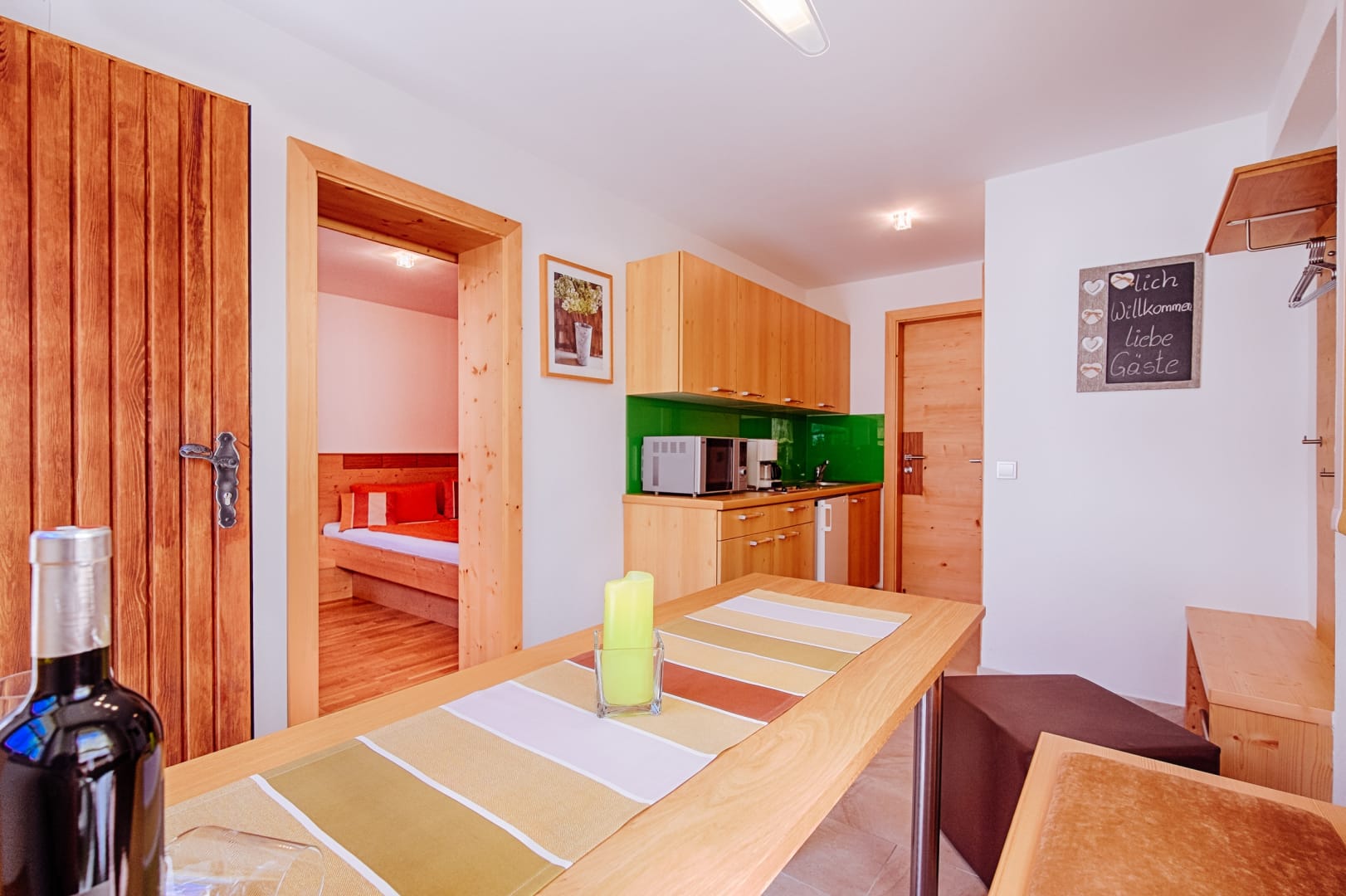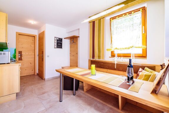 Unsere Ferienwohnung ist für 2 bis 3 Personen geeignet. Sie ist ausgestattet mit einem Doppelbett und einem Schlafsofa - ideal für Kleinfamilien. Die Wohnung ist ebenerdig, ruhig, hofseitig gelegen. Bad und WC getrennt. Vor der Ferienwohnung befindet sich eine Sitzecke - frühstücken Sie bei Schönwetter unter freiem Himmel.