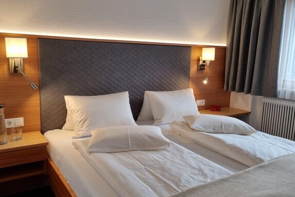 Es erwarten Sie gemütliche, helle Zimmer mit südseitigem Balkon, alle ausgestattet mit Dusche/WC und Sat-TV/Radio (20m²).
