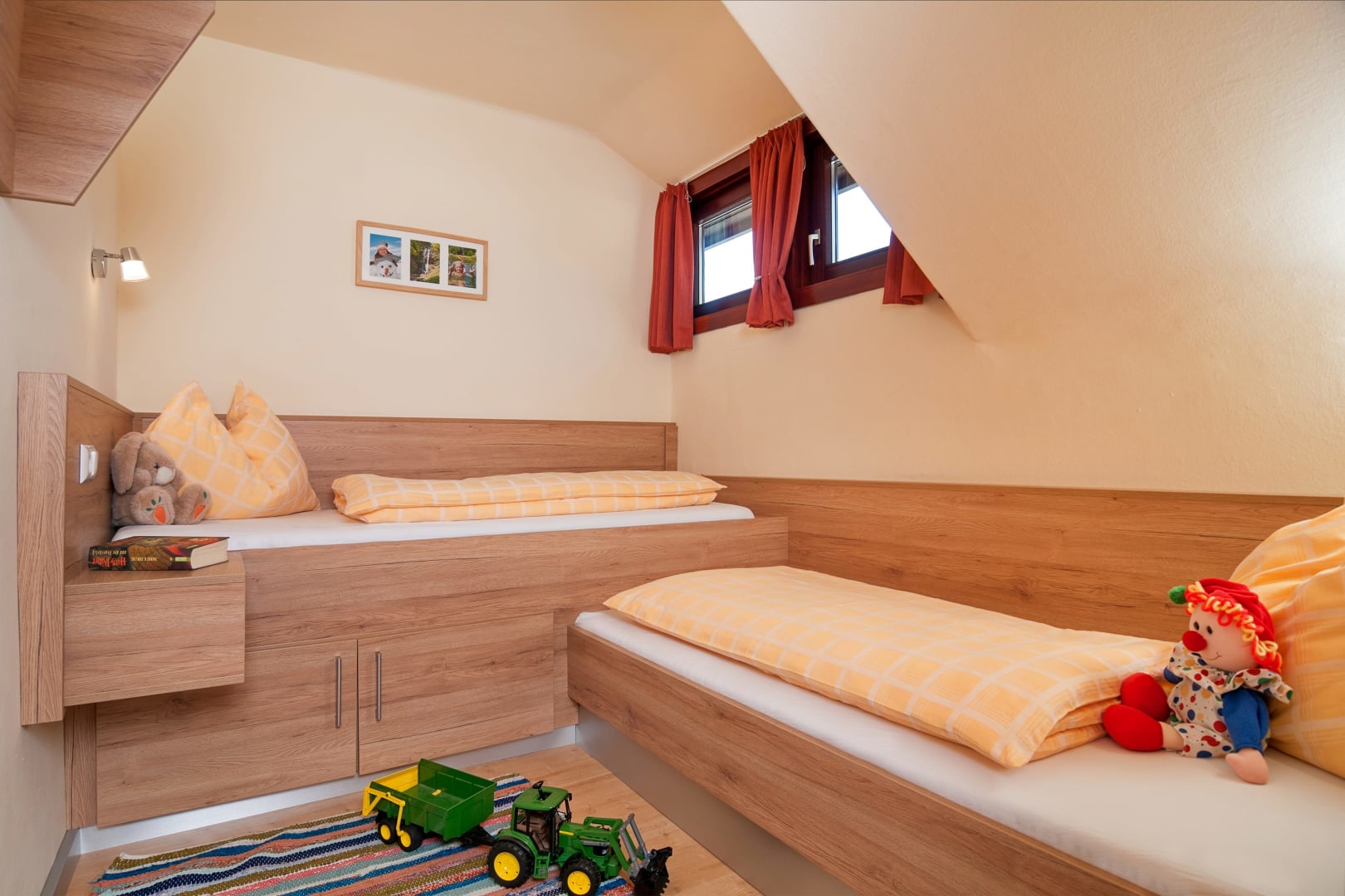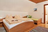Ferienwohnung mit 2 Schlafzimmern, 1 Doppelbett und 2 Einzelbetten, 1 Couch im Wohnbereich, großer Wohnbereich mit Küche, Geschirrspüler, Wasserkocher und Kaffemaschine, sowie Badezimmer mit Dusche/WC, Radio und TV.