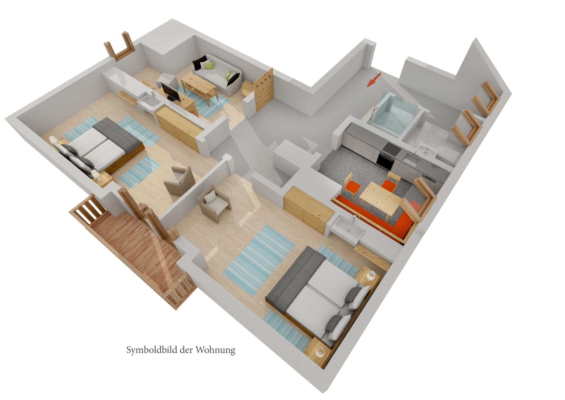 Gemütliches Flair, liebevolle Details und harmonische Akzente machen das 3-Raum-Apartment zu einem behaglichen Rückzugsort zum Wohlfühlen. Duftendes Zirbenholz im Schlafzimmer schenkt tiefen, erholsamen Schlaf, die voll ausgestattete Küche weckt Freude am Kochen.