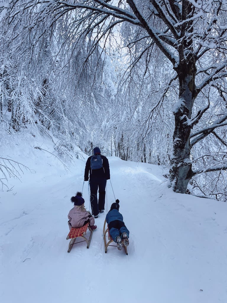 Im Stall herrscht friedliche Stille. Auf den Feldern zeichnen Rehspuren Muster in den Schnee. Kinder sausen jauchzend den Rodelhang hinunter, bauen Schneemänner oder liefern sich fröhliche Schneeballschlachten. Andere stapfen durch den stillen Winterwald, während ihr Atem kleine Wölkchen in die klare Luft malt.