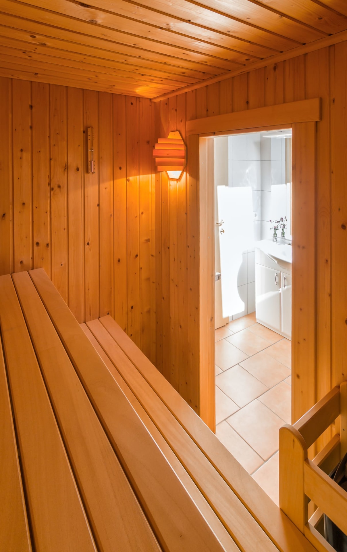 Apartment De Luxe (105m2) ist unterteilt in 3 Schlafzimmer, getrenntes WC vom Badezimmer, Badezimmer mit Dusche und integrierter Sauna, Vorraum, Küche modern ausgestattet mit Cerankochfeld, Backofen, Kühlschrank mit Gefrierfach, großer Wohn-Essbereich, Flachbildfernseher mit HD, und WLAN Anschluss. Die Wohnung ist durch einen eigenen Aufgang erreichbar.