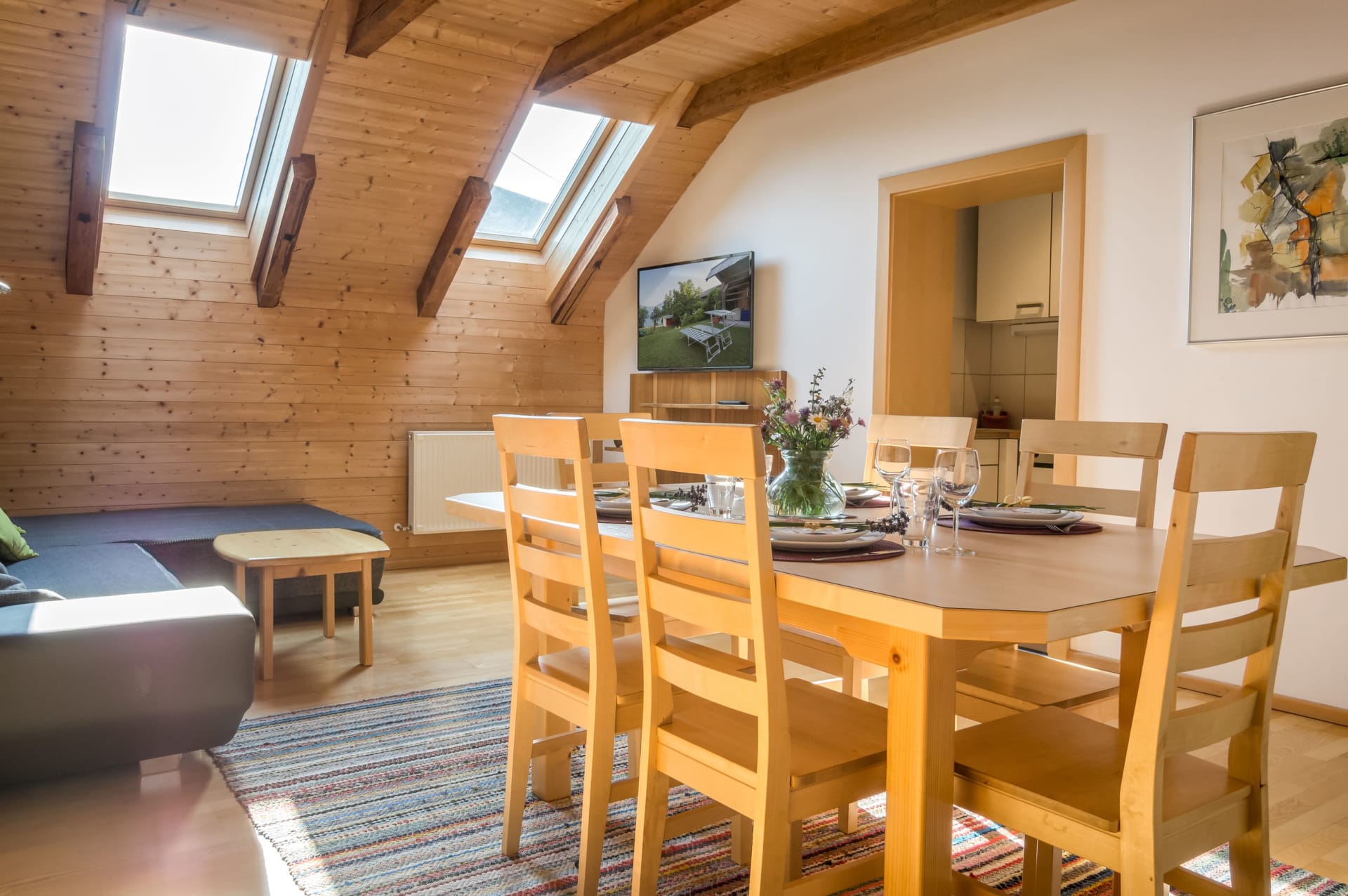 Der frische Schnee verwandelt den Goldberg in eine glitzernde Märchenwelt. Die Luft ist klar und rein und die Kälte zaubert bei jedem Lachen Atemwölkchen in den blauen Himmel. Die Lage ein Traum: nach Süden ausgerichtet, mitten in der Natur, Platz soweit das Auge reicht. Kein Lärm. Keine Menschenmassen. Kein Getrieben sein. Alle 3 Wohnungen mit 4 Blumen (Sternen) ausgezeichnet, mit separaten Eingang daher Privatsphäre garantiert, und 50 Meter voneinander getrennt.