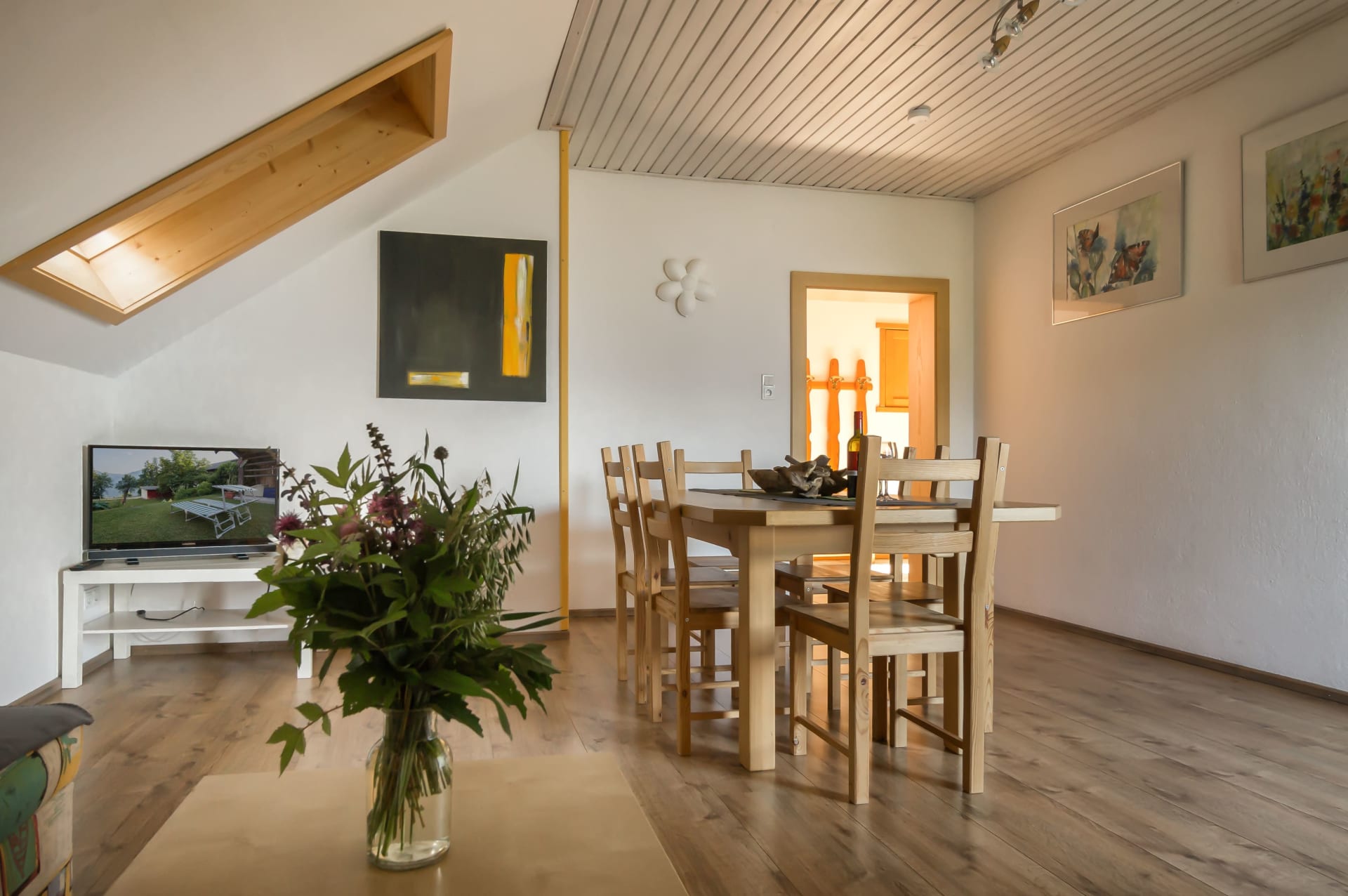Appartment Panoarma ist unterteilt in 2 Schlafzimmer, Vorraum, Wohn-Esszimmer, Bad mit Du/WC, Küche komplett eingerichte mit Zerankochfeld, Backofen, Kühlschrank mit Gefrierfach und Geschirrspüler und Balkon mit Panoramablick
