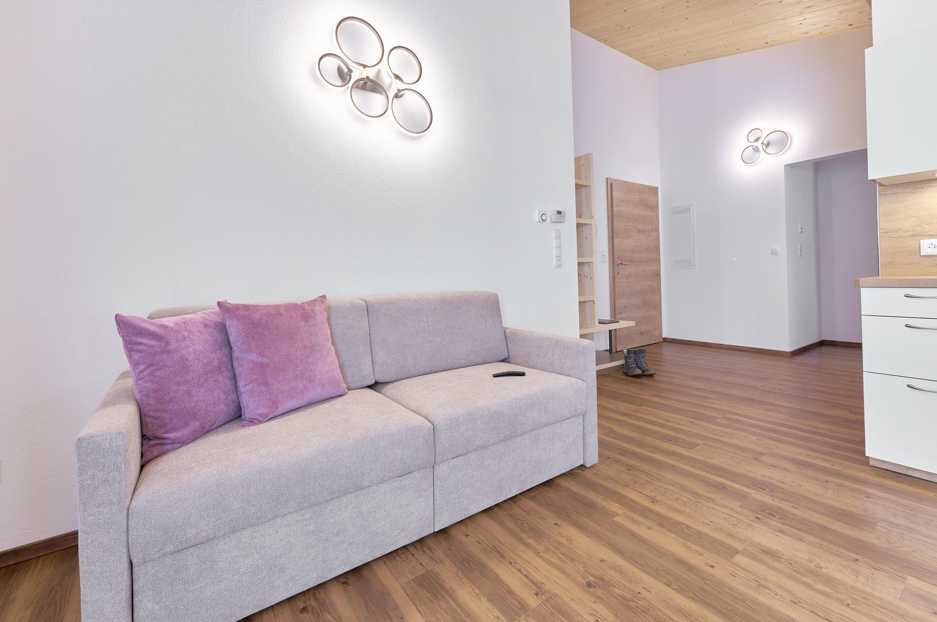 1 Doppelzimmer, 1 komplett ausgestattete Wohnküche mit großzügigem Essbereich (Herd mit Ceranfeld, Geschirrspüler uvm.) und einer ausziehbaren Schlafcouch für 2 weitere Personen, 1 Badezimmer mit Dusche/WC und Föhn, sowie Sat-TV, Safe und 1 Balkon.