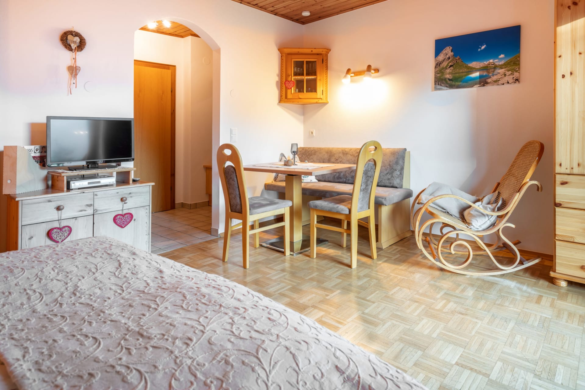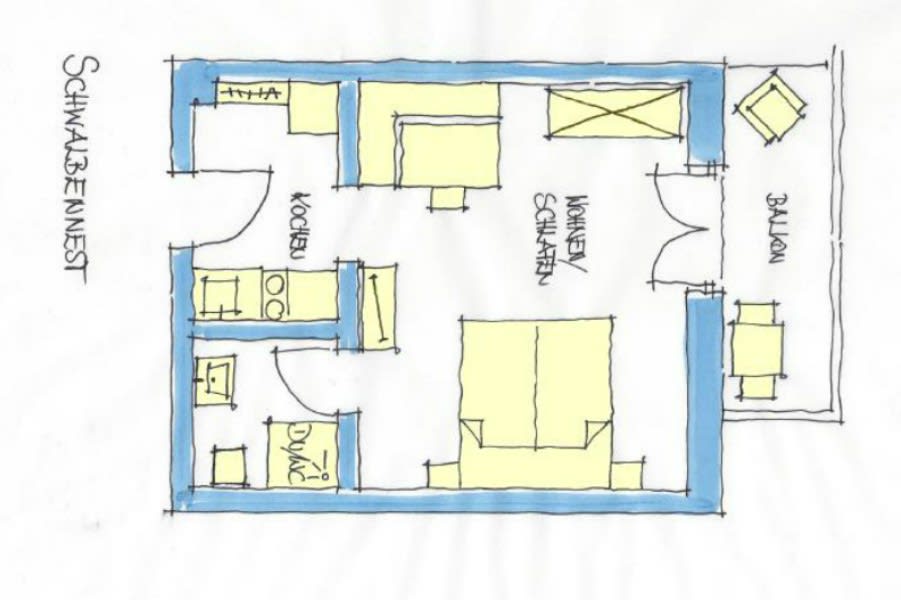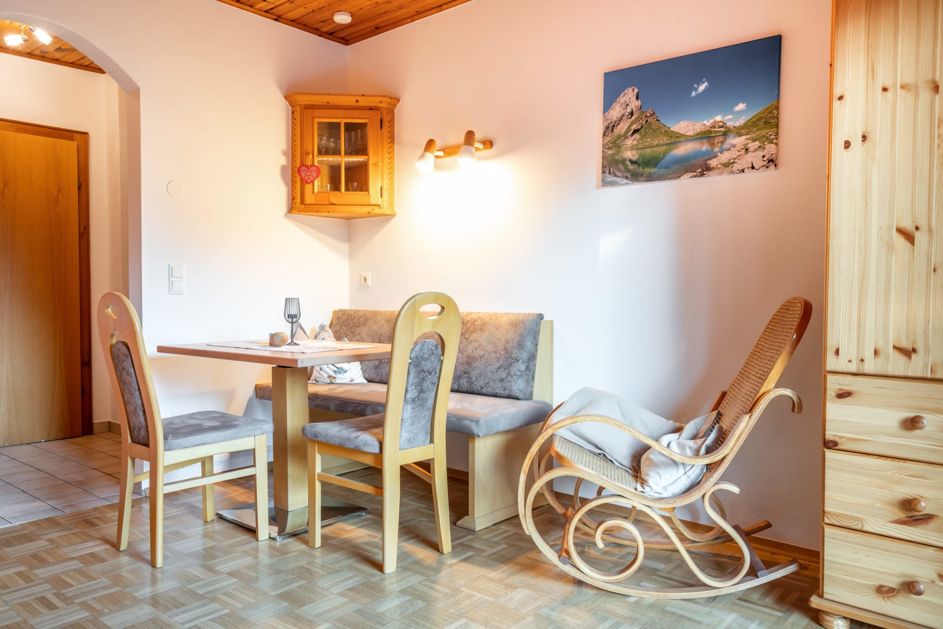 Ferienwohnung Schwalbennest. Klein aber fein! Unser Schwalbennest lädt ein zum Verweilen und Entspannen nach einem ereignisreichen Tag oder einer atemberaubenden Tour. In der heimeligen Sitzecke oder am südseitig gelegenen Balkon. Komplett neu eingerichtete Kleinküche!