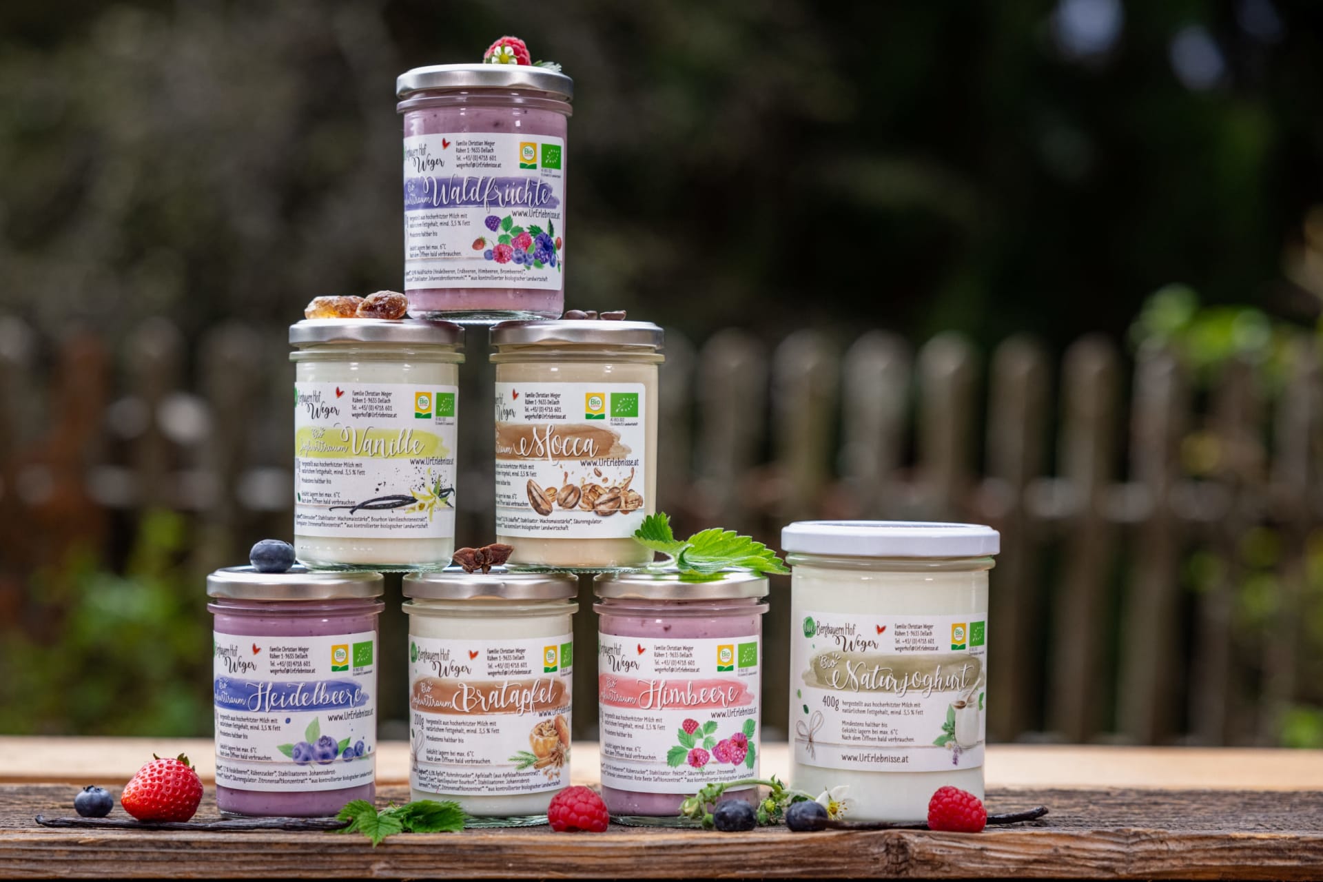 Unsere mehrfach ausgezeichneten, hofeigenen Bio-Produkte wie Holzofenbrot, Butter, Milch, Natur- und Fruchtjoghurt, Eier, Topfen, Topfenaufstrich und Topfenbällchen in Öl, Marmeladen, Säfte und Hausbrand stehen unseren Gästen täglich frisch im kleinen Hofladen zur Verfügung. Unser Betrieb wird bereits seit 1996 in kontrolliert biologischer Wirtschaftsweise geführt. Und dieser Biogedanke begleitet Sie auch täglich während Ihres Aufenthalts, von der eigenen Hoftrinkwasserquelle bis zur Seife im Bad.