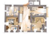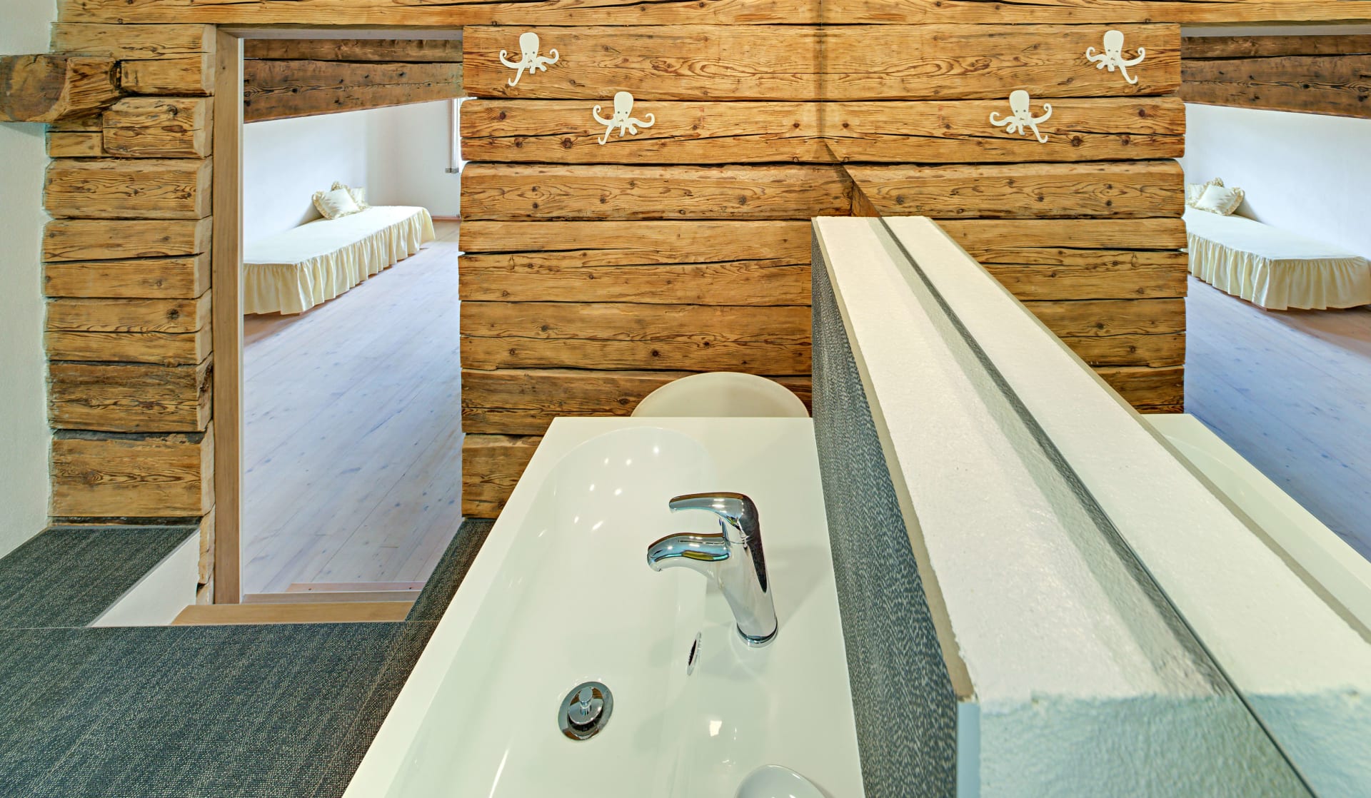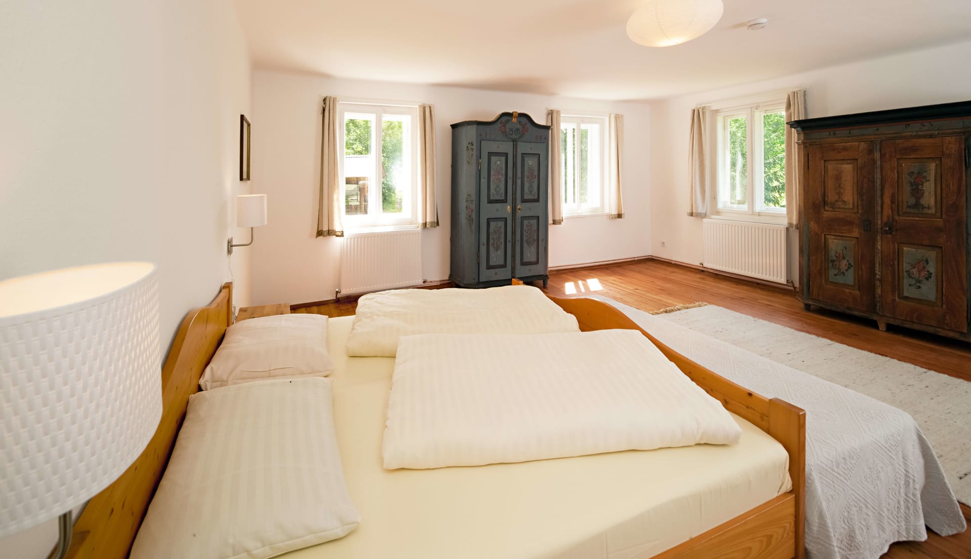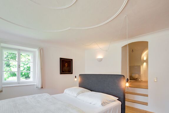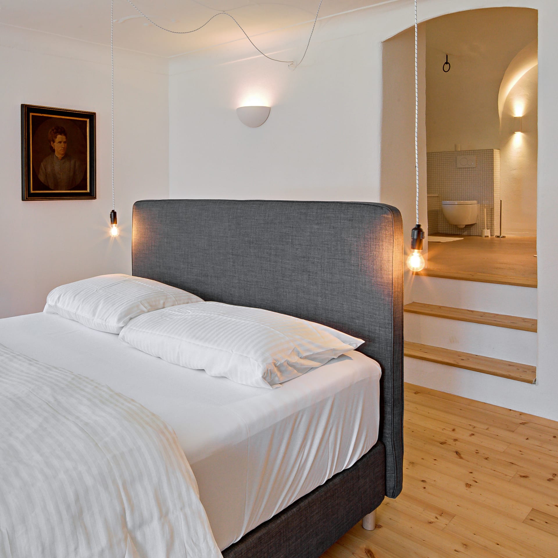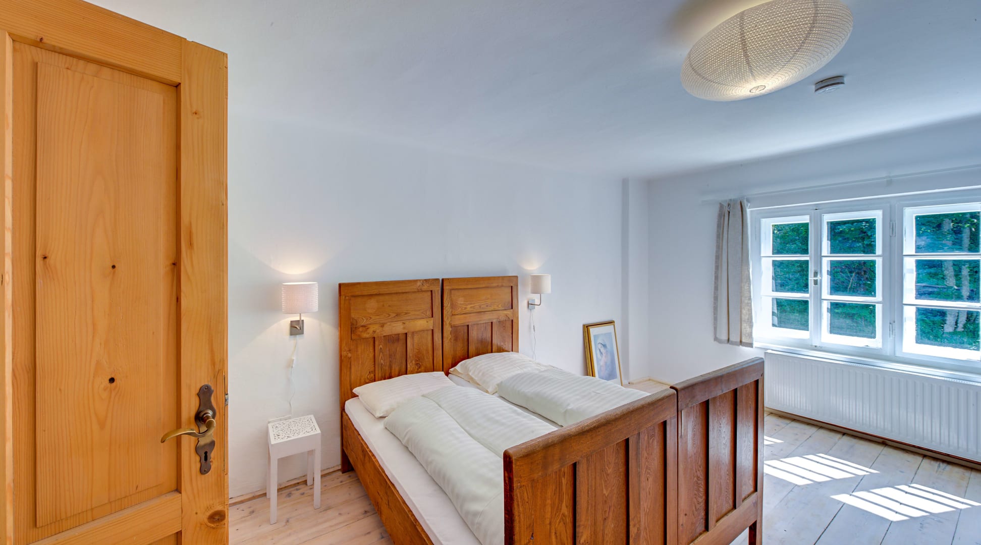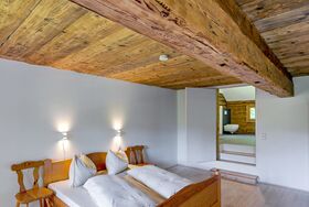 Vier großzügige Schlafzimmer, drei große Badezimmer, Tages-WC, voll ausgestattete Küche mit Terrasse, Stube mit Bauernofen und traditioneller Ofenbank.