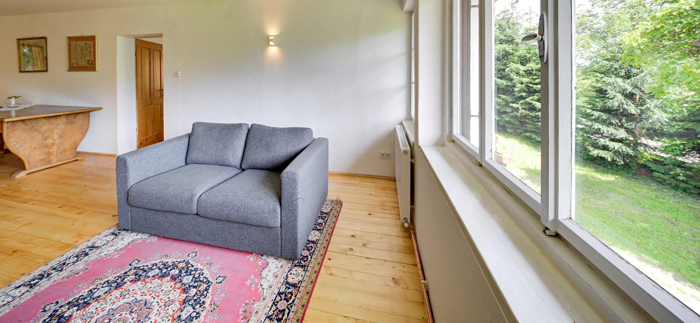 Die einzigartige Lage des Hauses besticht auf Anhieb: Allein inmitten einer Lichtung mit Blick auf Karnische und Gailtaler Alpen und im Schutz des Waldes, durch den man in wenigen Minuten zur Burgruine Goldendstein gelangt, kann man das genießen, was mittlerweile eine Rarität geworden ist: Ruhe – ohne Ablenkung.