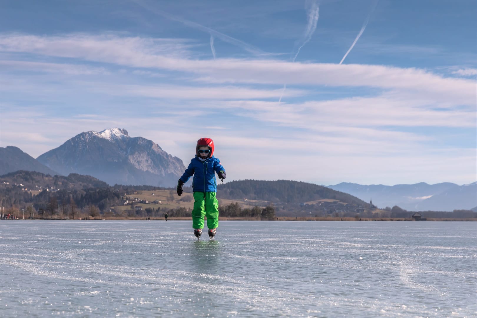 Eislaufen wie früher - der Presseggersee und der Weissensee verwandeln sich im Winter in natürliche Eisflächen - ein echtes Erlebnis und ein Stück Kindheitserinnerung.
