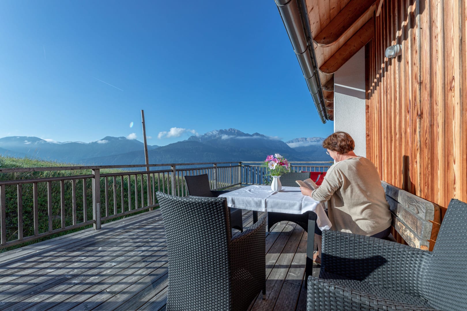 Unsere geräumige und lichtdurchflutete Ferienwohnung Gartnerkofel im ersten Stock, mit großzügigen 70 m², verführt mit zwei großen Südbalkonen. Ausgestattet mit gemütlichen Balkonmöbeln, laden sie zu entspannten Stunden ein. Genießen Sie hier Ihr Frühstück mit einem atemberaubenden Panoramablick, der Ihren Urlaubstag perfekt einläutet.