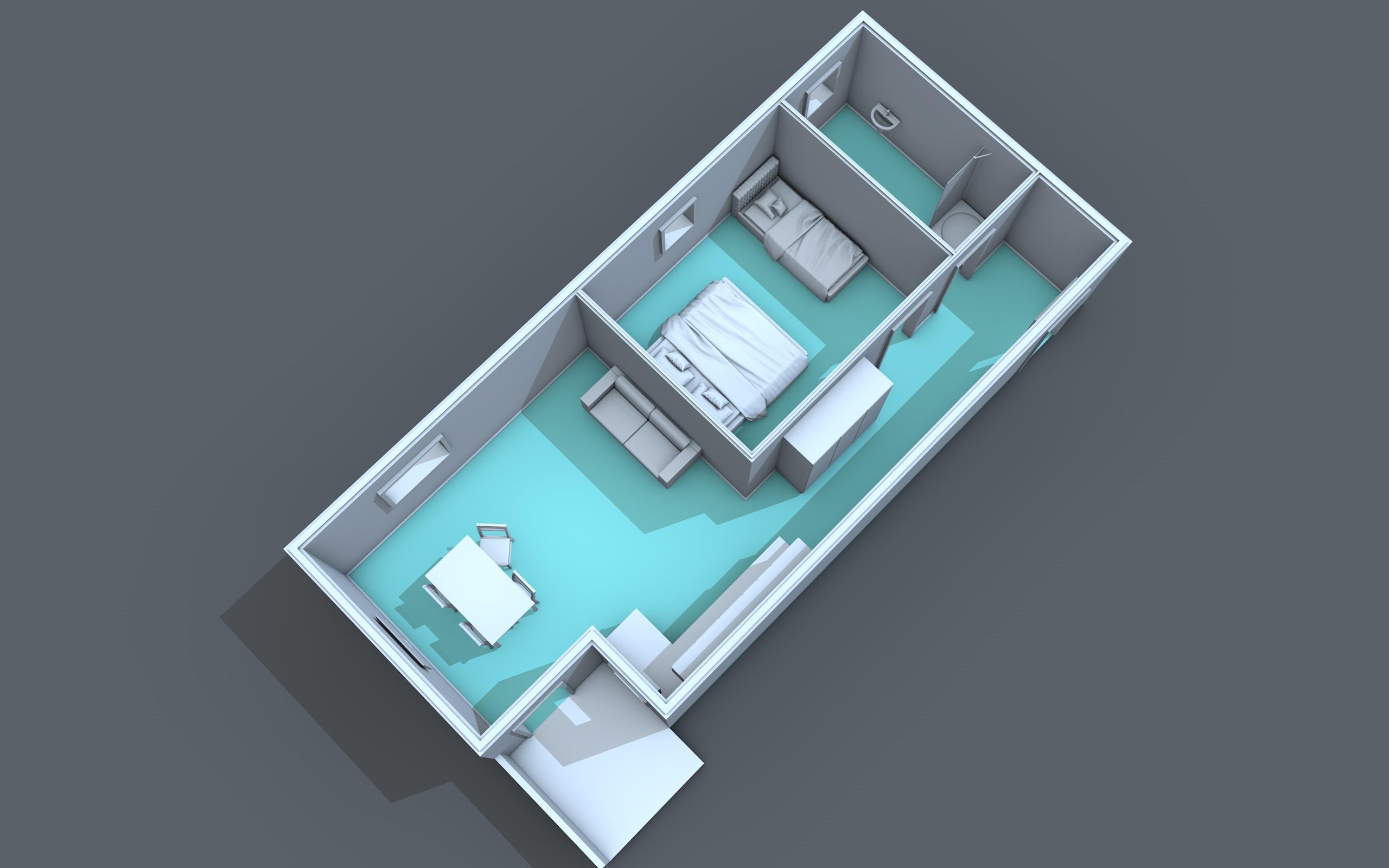 Ihr Appartement Top 8 im Dachgeschoss mit Sicht-Dachstuhl verfügt über ca. 43 m² und besteht aus: