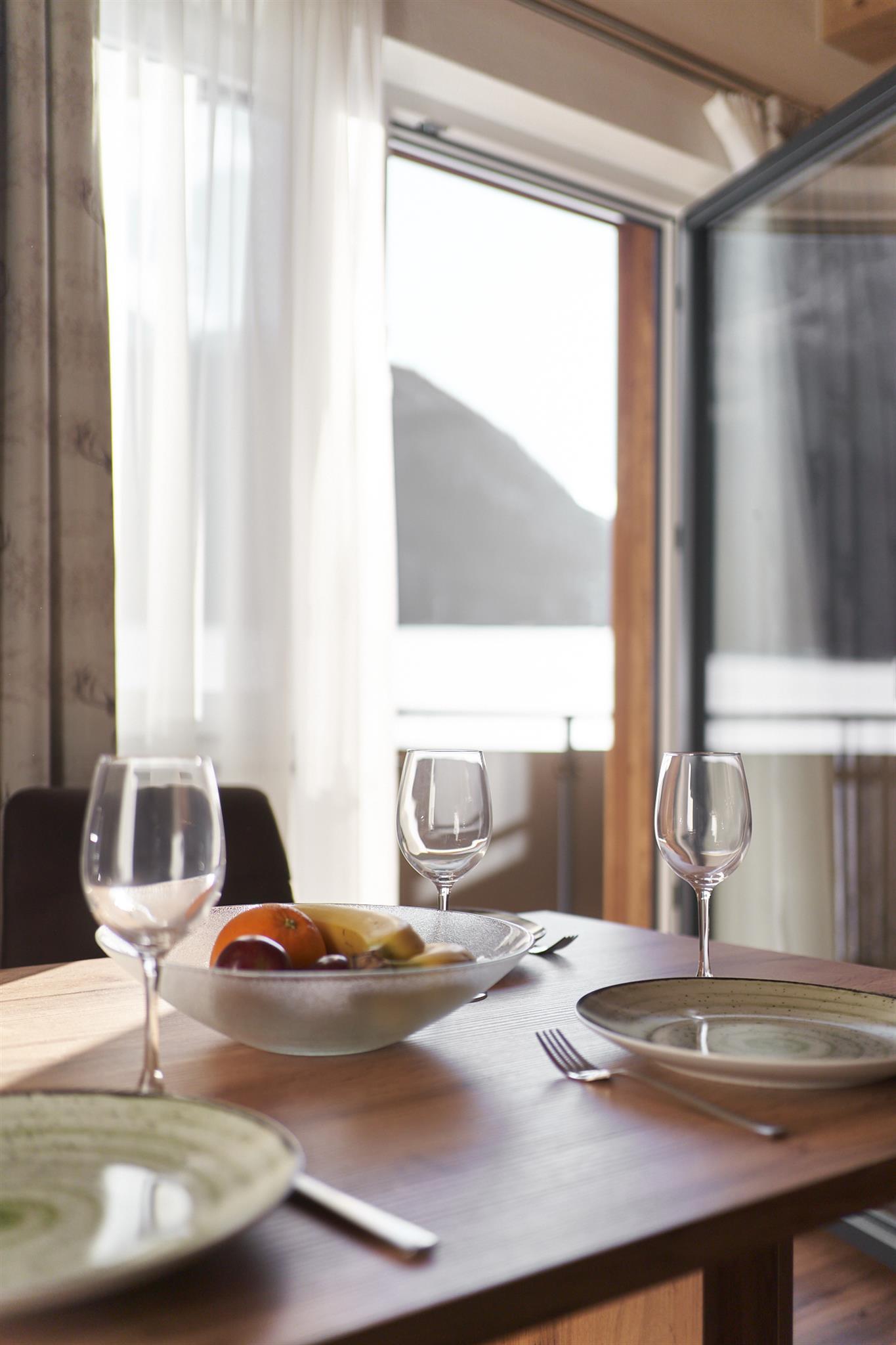 1 Doppelzimmer mit Boxspringbett, 1 komplett ausgestattete Wohnküche mit großzügigem Essbereich (Herd mit Ceranfeld, Geschirrspüler uvm.) und einer ausziehbaren Schlafcouch für 2 weitere Personen, 1 Badezimmer mit Dusche/WC und Föhn, sowie Sat-TV, Safe und 1 Balkon.