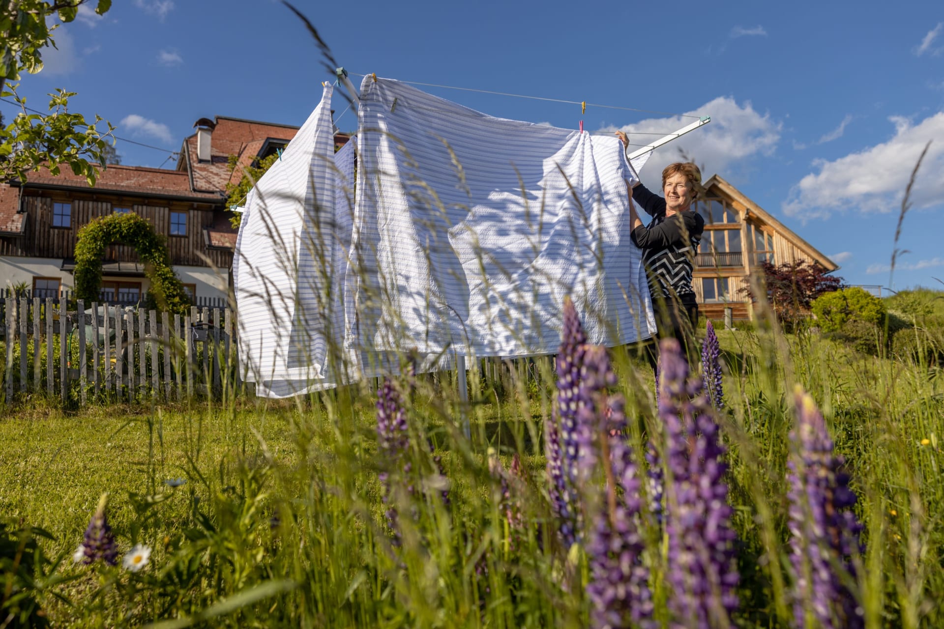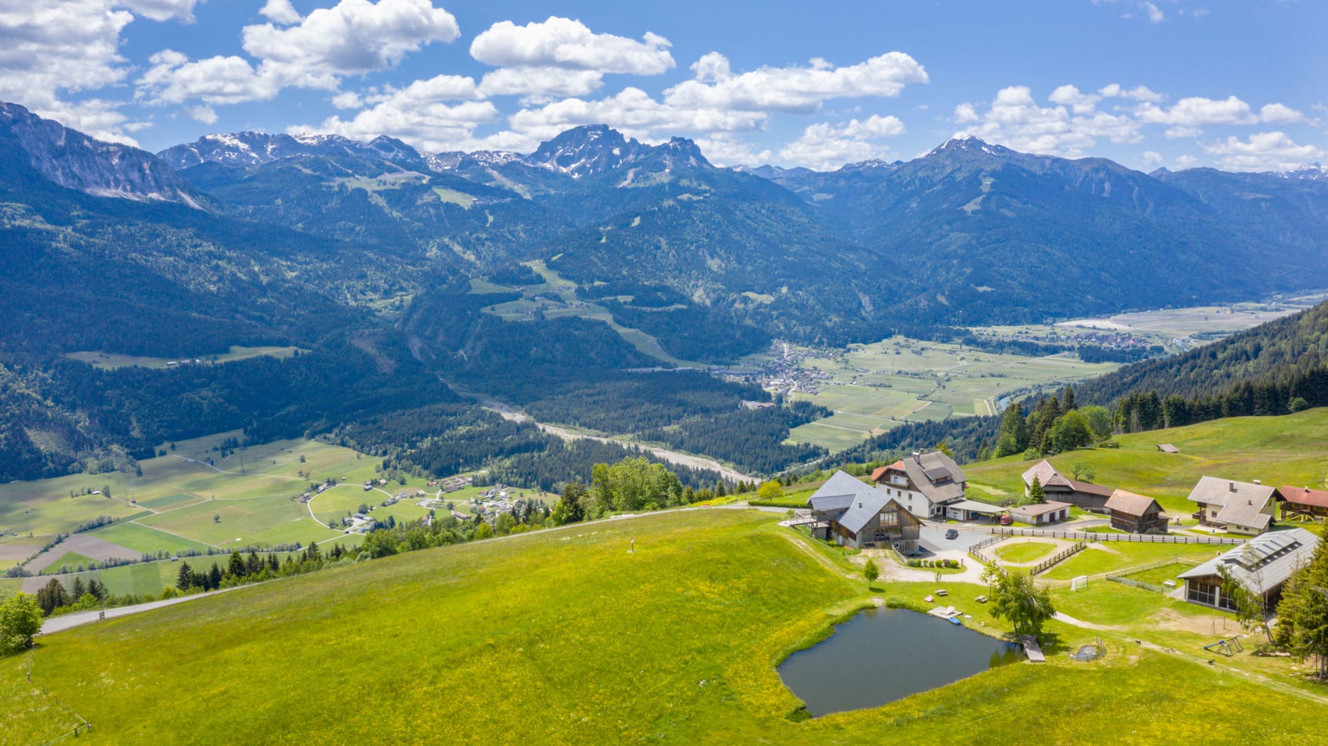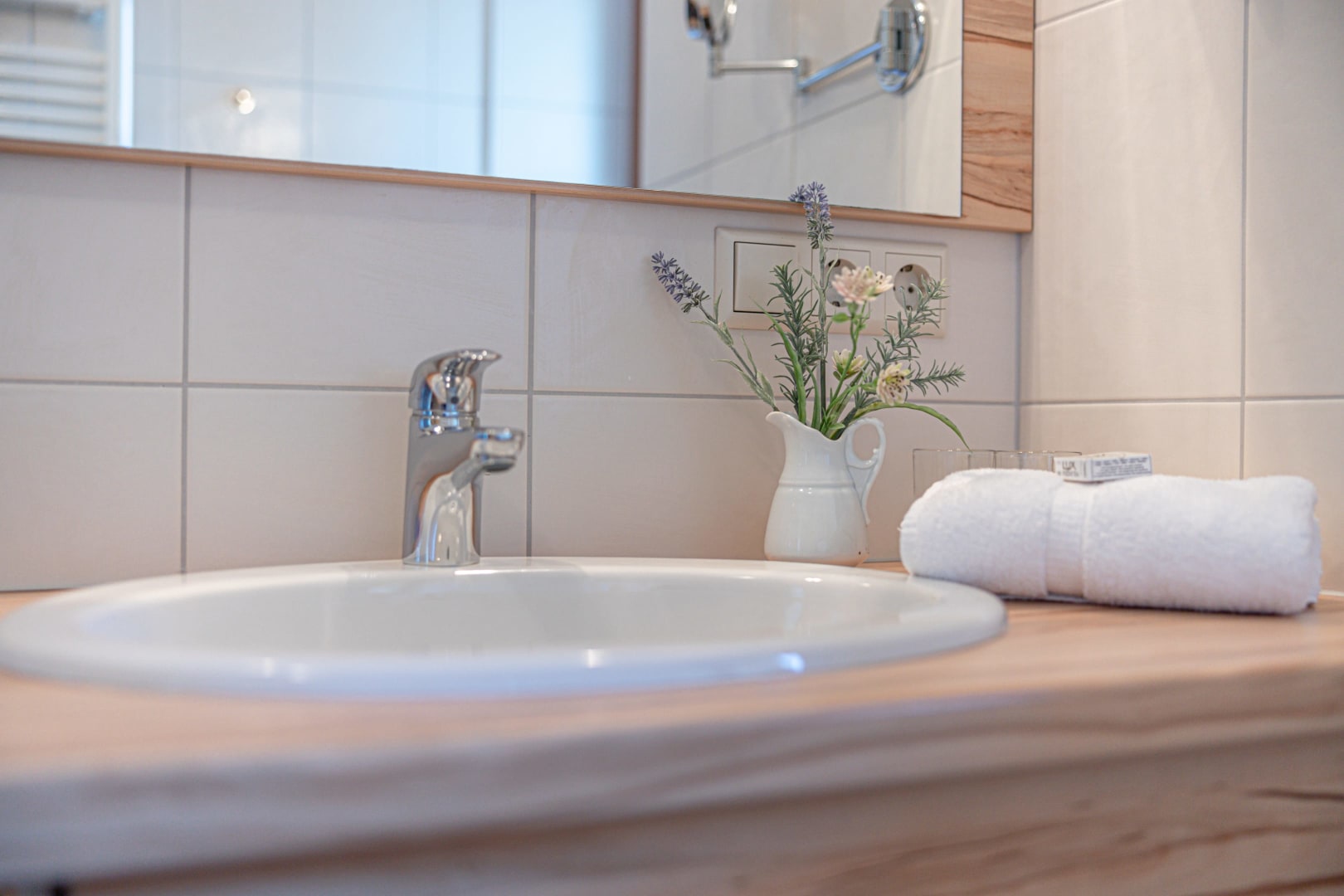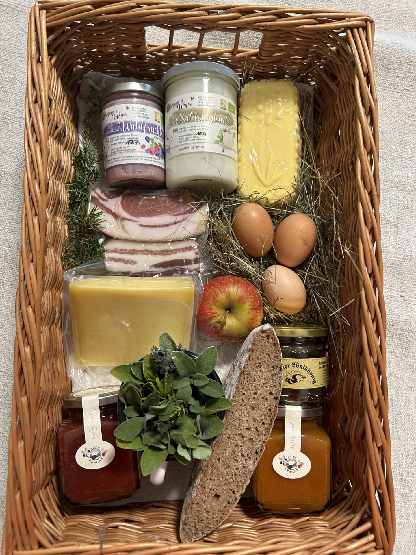 Ihre Oase mit Bergblick: Geräumige Ferienwohnung (59 m²) Willkommen in Ihrer großzügigen und hellen Ferienwohnung im 2. Stock unseres Haupthauses, eine perfekte Wahl für Familien und Freunde. Hier erwartet Sie ein Zuhause auf Zeit, das keine Wünsche offenlässt. Treten Sie hinaus auf Ihren weitläufigen Süd- und Westbalkon und lassen Sie sich von der atemberaubenden Aussicht auf die majestätische Berglandschaft verzaubern. Ein Wäscheständer ist für Ihre Bequemlichkeit am Balkon vorhanden, damit Sie die frische Bergluft nutzen können. Der einladende Wohn- und Essbereich, ausgestattet mit stilvollen Naturholzböden, bildet den gemütlichen Mittelpunkt der Wohnung. Die separate, komplett ausgestattete Küche lässt keine kulinarischen Wünsche offen. Sie verfügt über ein modernes 4-Platten-Cerankochfeld, Kühlschrank, Geschirrspüler, Mikrowellenherd, Wasserkocher, Filter-Kaffeemaschine, Toaster sowie eine umfassende Auswahl an Koch- und Essgeschirr, Geschirrtüchern und Schneidbrettern. Perfekt, um gemeinsame Mahlzeiten zuzubereiten und diese dann auf dem Balkon mit Panoramablick zu genießen. Zwei separate Schlafzimmer garantieren erholsamen Schlaf für alle Gäste. Das Hauptschlafzimmer lockt mit einem luxuriösen Boxspringbett (Kingsize-Format), während das Kinderzimmer mit zwei komfortablen Einzelbetten ausgestattet ist. Hochwertige Bettwäsche und flauschige Handtücher liegen selbstverständlich für Sie bereit. Das moderne Badezimmer überzeugt mit einer begehbaren Dusche, einem Föhn und einem praktischen Kosmetikspiegel. Das WC ist separat angelegt. Auf Wunsch stellen wir Ihnen gerne eine passende Kleinkindausstattung (inklusive Kinderbett) zur Verfügung. Für Ihre Unterhaltung und Kommunikation sorgen ein Sat-TV, kostenloses WLAN . Ihre Wertsachen können Sie sicher im vorhandenen Safe verwahren. Ein kostenloser Parkplatz direkt am Haus rundet das Angebot ab. Beginnen Sie Ihren Tag entspannt mit unserem praktischen Brötchenservice.