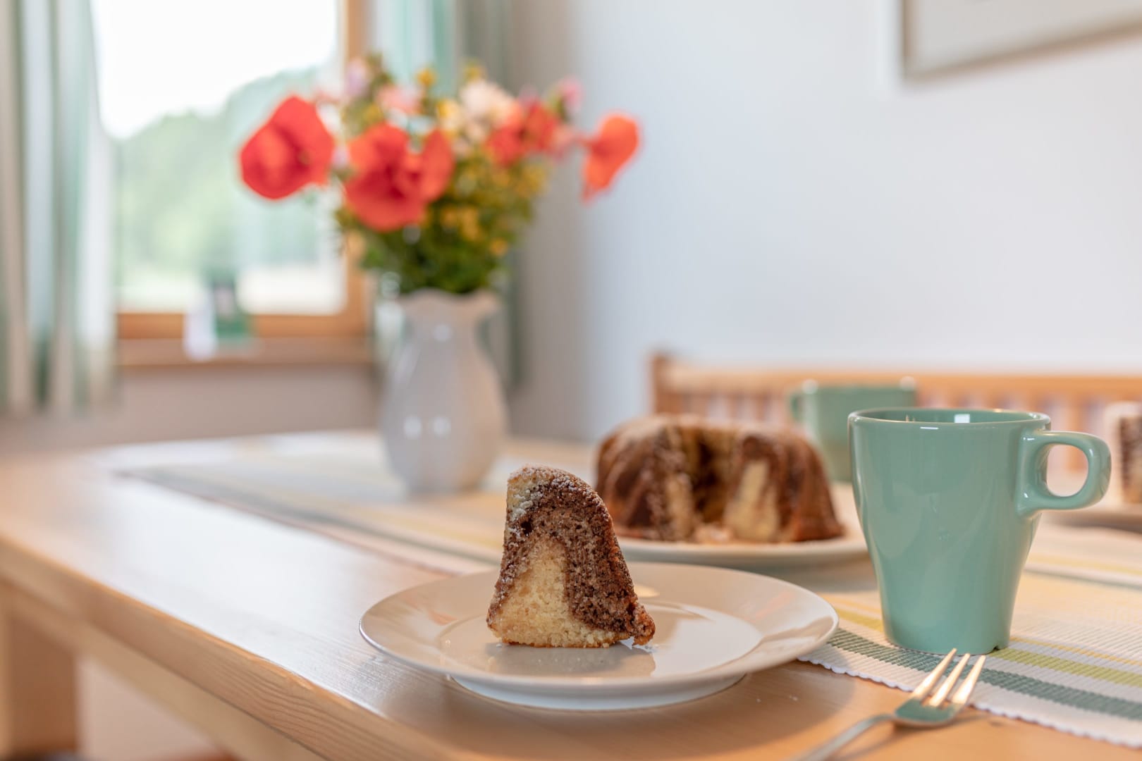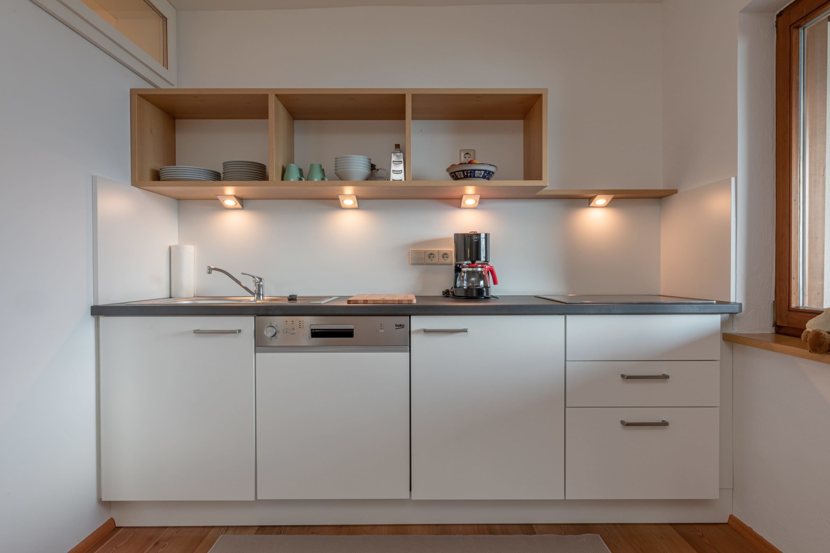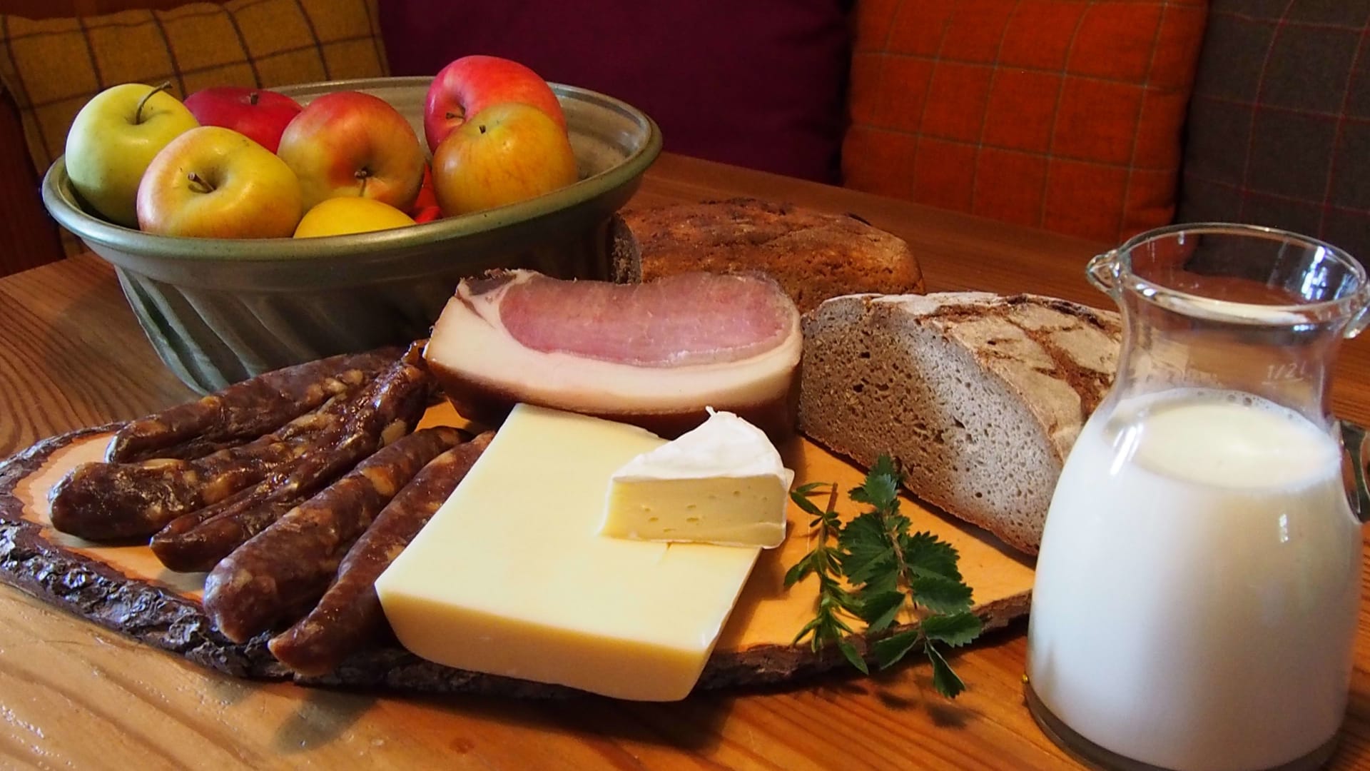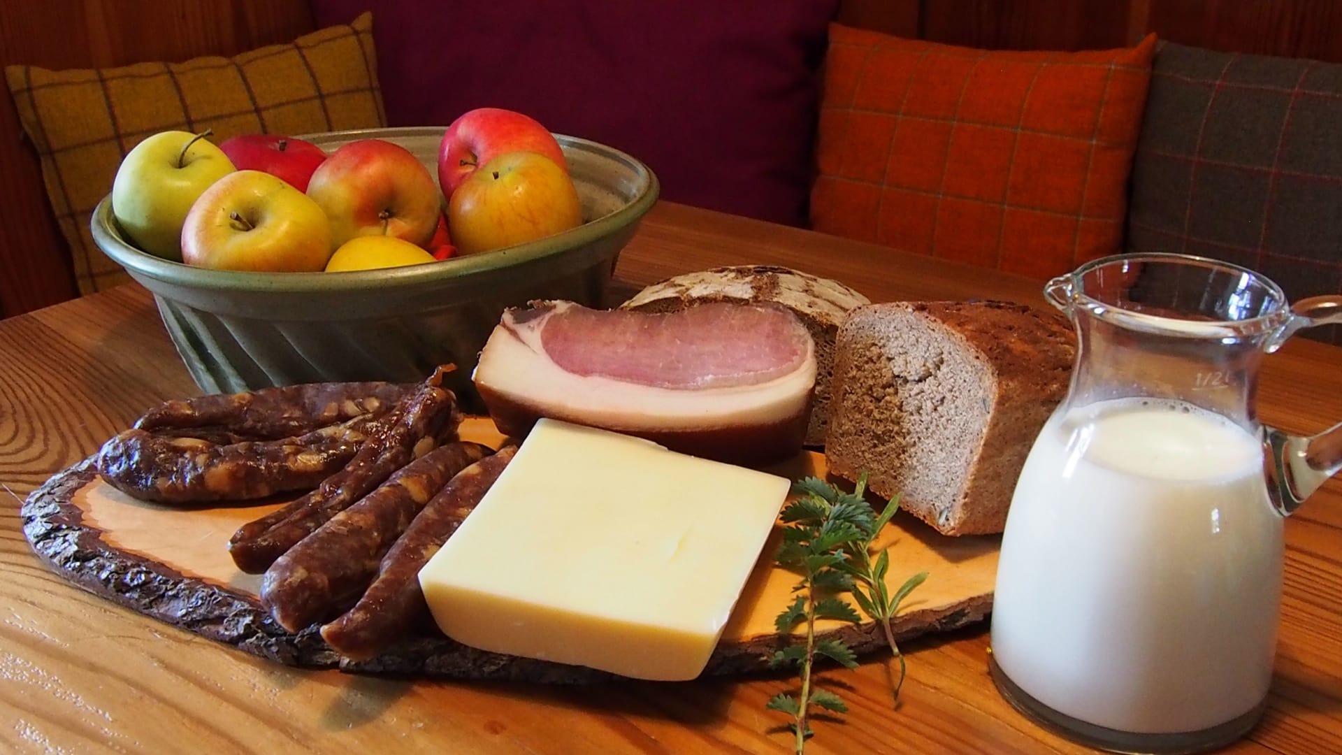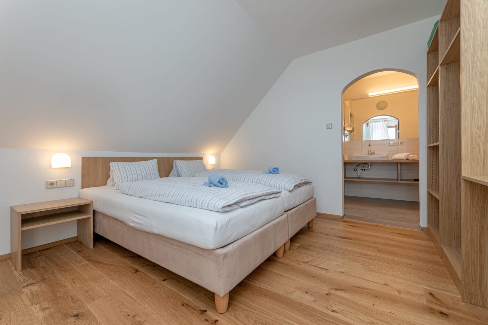 Ihre Oase mit Bergblick: Geräumige Ferienwohnung (59 m²) Willkommen in Ihrer großzügigen und hellen Ferienwohnung im 2. Stock unseres Haupthauses, eine perfekte Wahl für Familien und Freunde. Hier erwartet Sie ein Zuhause auf Zeit, das keine Wünsche offenlässt. Treten Sie hinaus auf Ihren weitläufigen Süd- und Westbalkon und lassen Sie sich von der atemberaubenden Aussicht auf die majestätische Berglandschaft verzaubern. Ein Wäscheständer ist für Ihre Bequemlichkeit am Balkon vorhanden, damit Sie die frische Bergluft nutzen können. Der einladende Wohn- und Essbereich, ausgestattet mit stilvollen Naturholzböden, bildet den gemütlichen Mittelpunkt der Wohnung. Die separate, komplett ausgestattete Küche lässt keine kulinarischen Wünsche offen. Sie verfügt über ein modernes 4-Platten-Cerankochfeld, Kühlschrank, Geschirrspüler, Mikrowellenherd, Wasserkocher, Filter-Kaffeemaschine, Toaster sowie eine umfassende Auswahl an Koch- und Essgeschirr, Geschirrtüchern und Schneidbrettern. Perfekt, um gemeinsame Mahlzeiten zuzubereiten und diese dann auf dem Balkon mit Panoramablick zu genießen. Zwei separate Schlafzimmer garantieren erholsamen Schlaf für alle Gäste. Das Hauptschlafzimmer lockt mit einem luxuriösen Boxspringbett (Kingsize-Format), während das Kinderzimmer mit zwei komfortablen Einzelbetten ausgestattet ist. Hochwertige Bettwäsche und flauschige Handtücher liegen selbstverständlich für Sie bereit. Das moderne Badezimmer überzeugt mit einer begehbaren Dusche, einem Föhn und einem praktischen Kosmetikspiegel. Das WC ist separat angelegt. Auf Wunsch stellen wir Ihnen gerne eine passende Kleinkindausstattung (inklusive Kinderbett) zur Verfügung. Für Ihre Unterhaltung und Kommunikation sorgen ein Sat-TV, kostenloses WLAN . Ihre Wertsachen können Sie sicher im vorhandenen Safe verwahren. Ein kostenloser Parkplatz direkt am Haus rundet das Angebot ab. Beginnen Sie Ihren Tag entspannt mit unserem praktischen Brötchenservice.