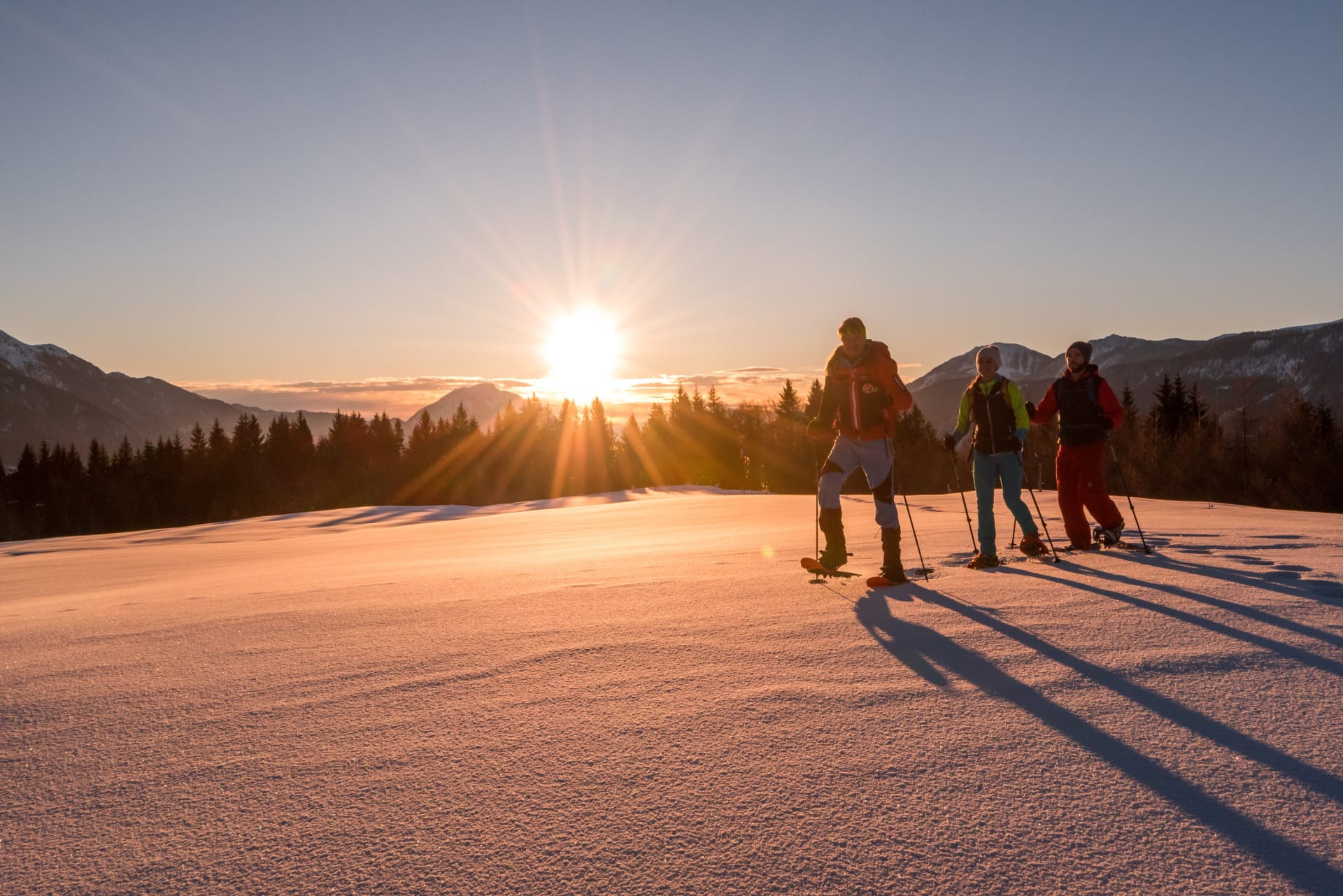 Wenn der erste Sonnenstrahl über die Gipfel blitzt und ihr beim Frühstück schon ein 360 Grad Panorama der Karnischen Alpen genießt, beginnt der Tag mit einem echten Naturmoment. Stille. Weite. Frische Bergluft. Nur das Knirschen des Schnees unter den Schuhen - un die warmen Strahlen der Wintersonne im Gesicht.