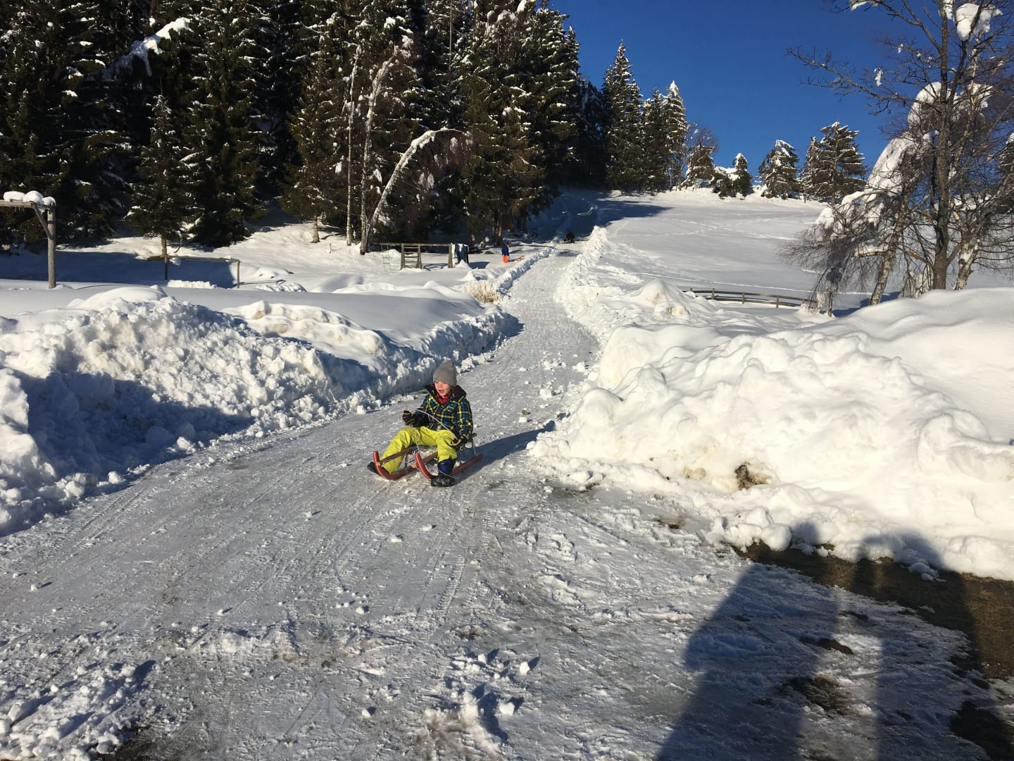 Rodelspaß am Guggenberg - nicht weit vom Hof entfernt liegt die beleuchtete Rodelbahn - perfekt für Familien und nächtliche Abenteuer im Schnee.