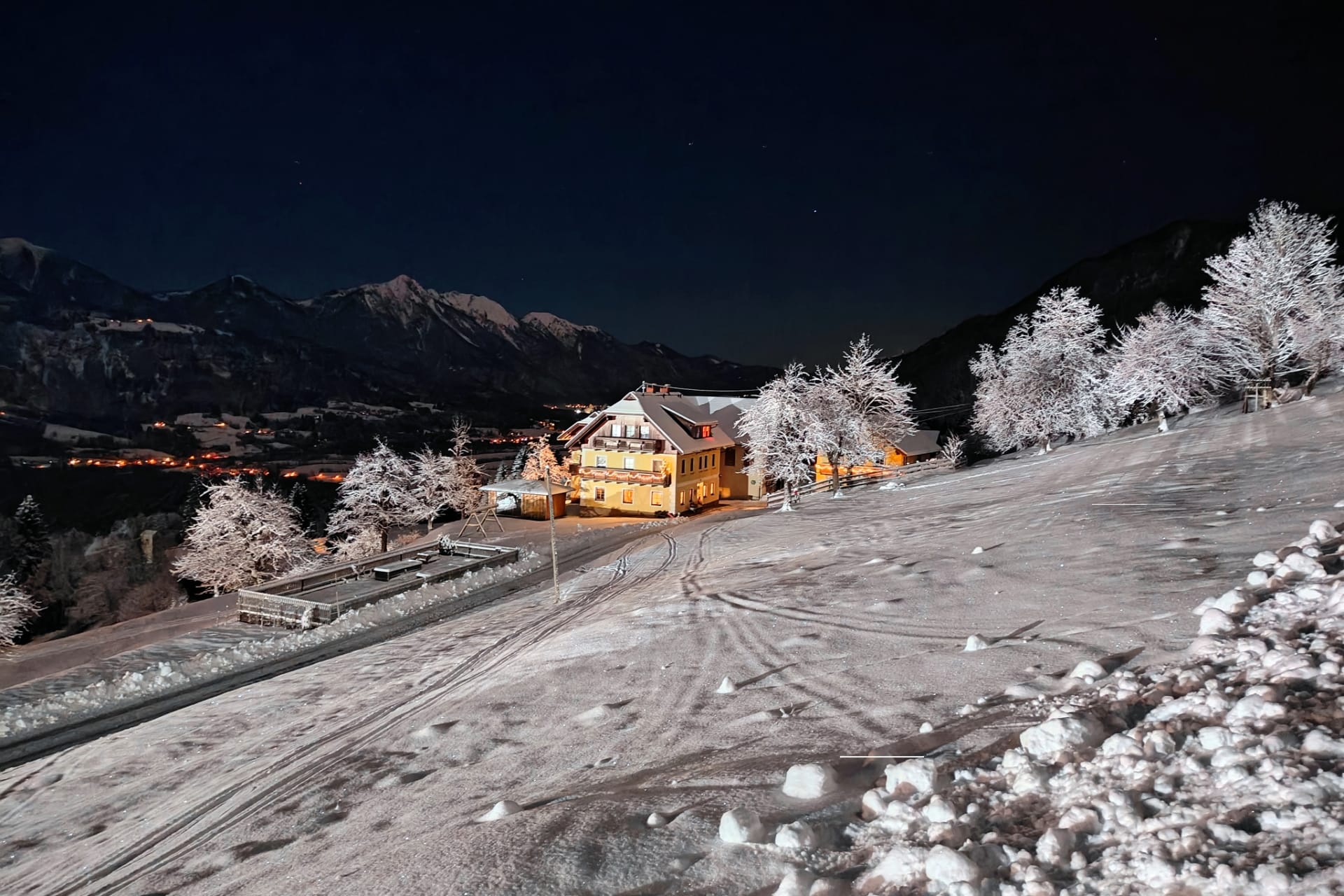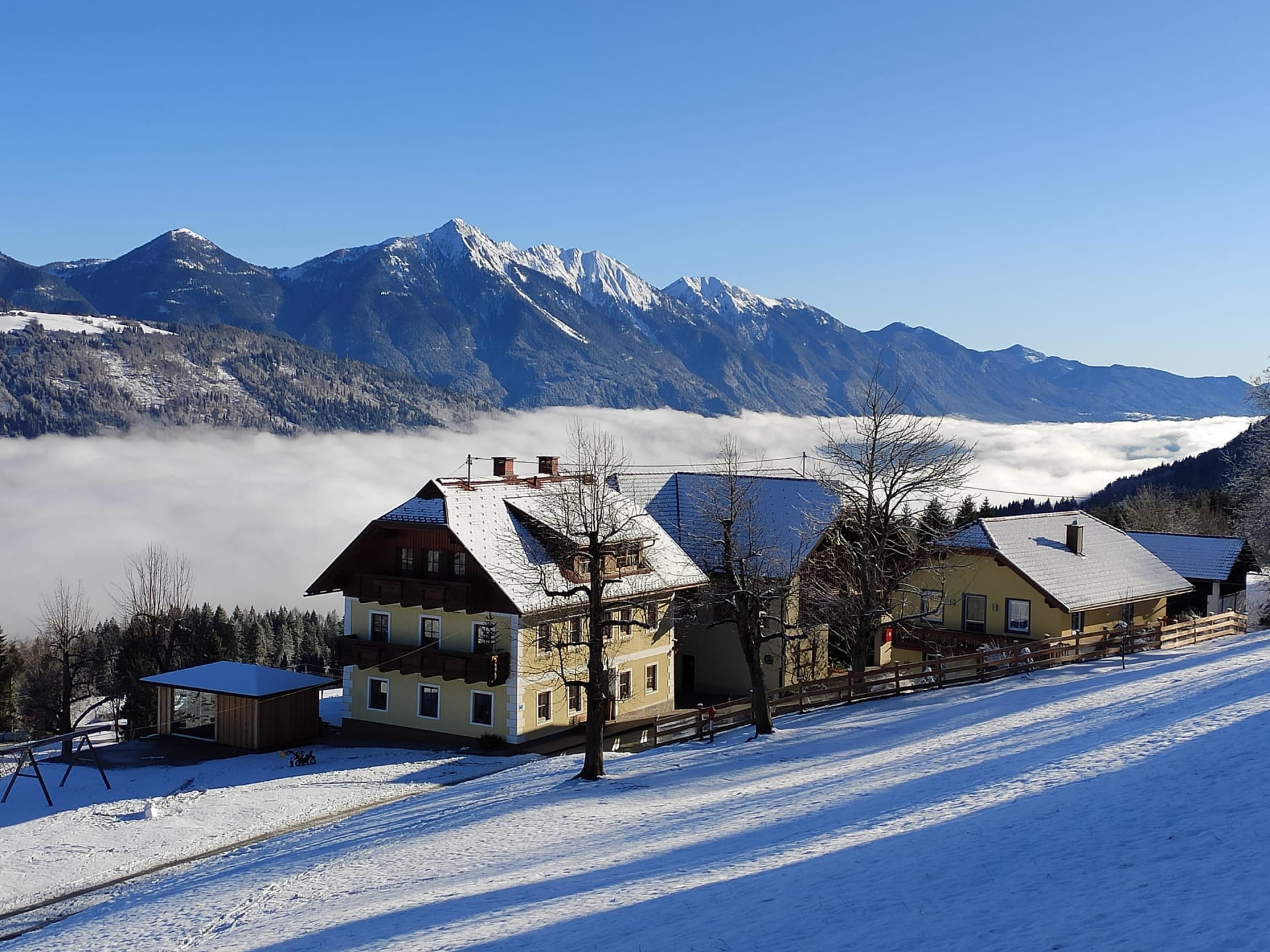 Unser Haus liegt in der kleinen Ortschaft Schlanitzen, an der Talabfahrt des größten Skigebietes Kärntens, dem Nassfeld. Bei ausreichender Naturschneelage schnallt ihr die Skier direkt vor der Haustüre an und ab geht`s auf die Piste. Der Milleniumexpress (Seilbahn auf das Nassfeld) transportiert euch in ca. 20min von 600 auf 1900 Meter Seehöhe. Das Herz jedes Alpinskifahrers schlägt hier schneller, denn über 80 Pistenkilometer warten auf eure Schwünge.