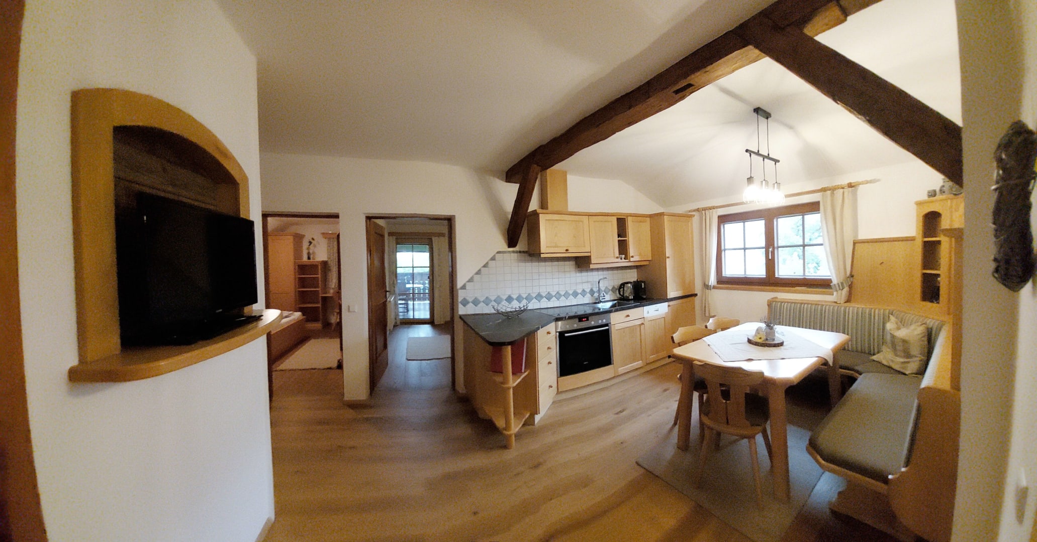 Die drei Wohnungen am Malerhof und der Troatkastn sind klassisch, geräumig und im bäuerlichen Stil ausgestattet. Wir legen großem Wert auf Vollholzmöbel und Naturmaterialien wie Baumwolle und Leinen. Sie sind alle voll ausgestattet, Bettwäsche und Handtücher werden zur Verfügung gestellt. Nachdem wir den Hof biologisch führen, achten wir auf möglichst natürliche Reinigungsmittel.