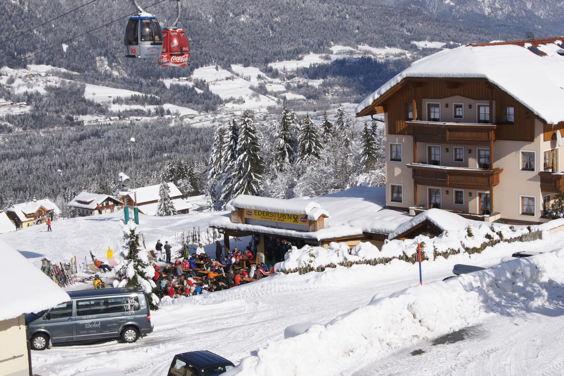 Das Aparthotel Ederhof mit einzigartiger Lage in der Schiarena Nassfeld - in Kärnten im Süden von Österreich.