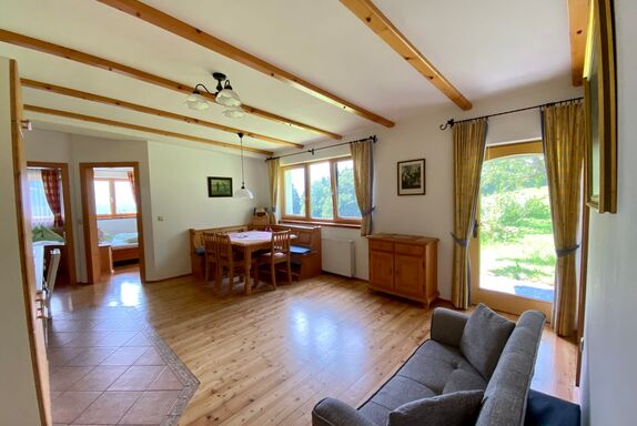 Schöne - bäuerlich eingerichtete - Ferienwohnung. Eine große Wohnküche, drei Schlafzimmer, WC u. Bad getrennt.