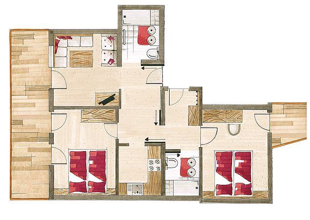 Wohlfühlen, genießen, ausspannen - Appartement mit Balkon und komfortabler Einrichtung: zwei Doppelzimmer; Schlaf-/Wohnraum mit gemütlicher Essecke und Schlafsofa (5. + 6. Person); vollausgestattete Küche mit Geschirrspüler, Mikrowelle, Kühlschrank, Cerankochfeld, Backrohr, Kaffeemaschine, TV uvm.; zwei Badezimmer mit WC. Auf Anfrage getrennte Betten möglich. Größe: ca. 69 m²