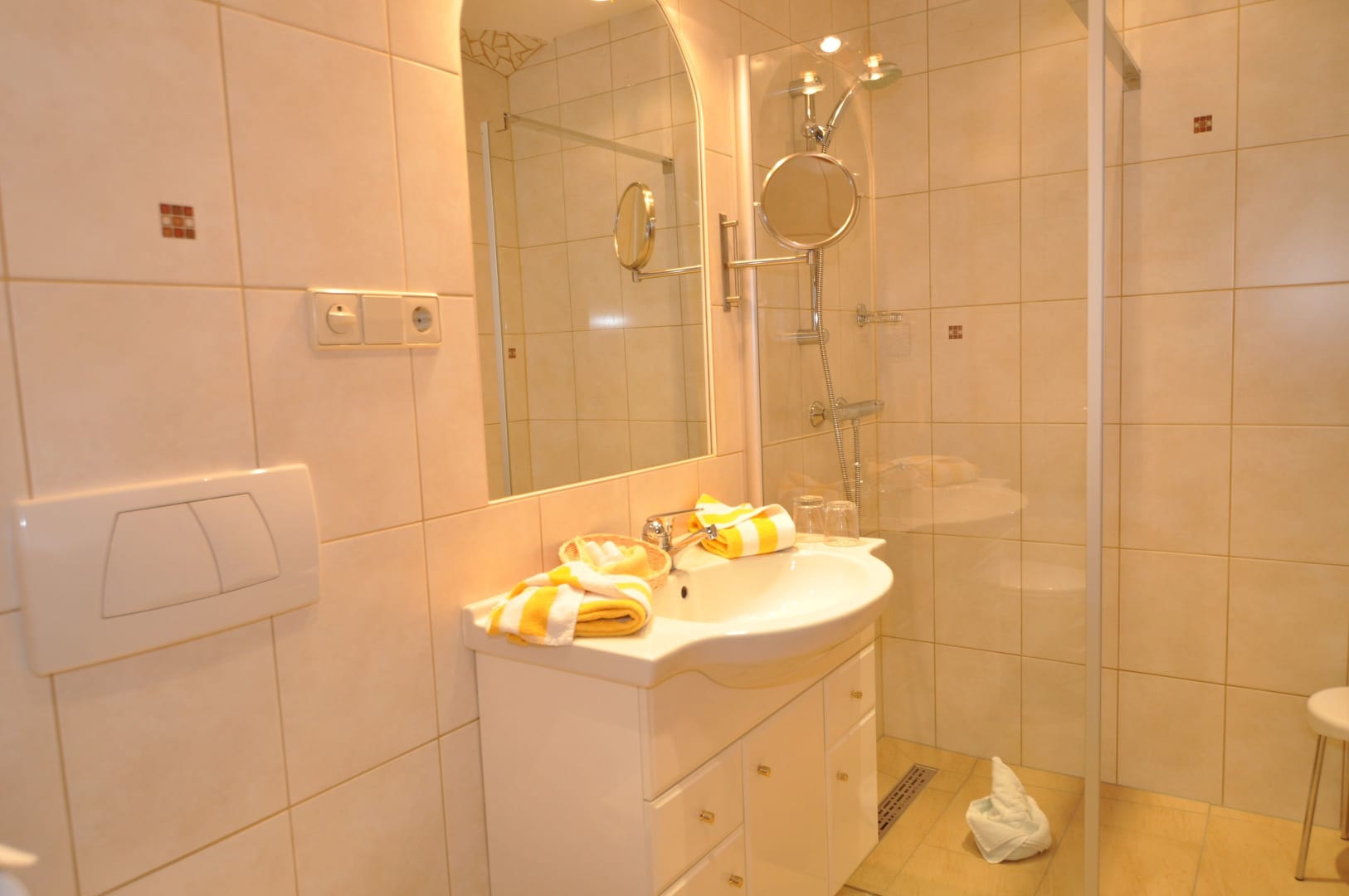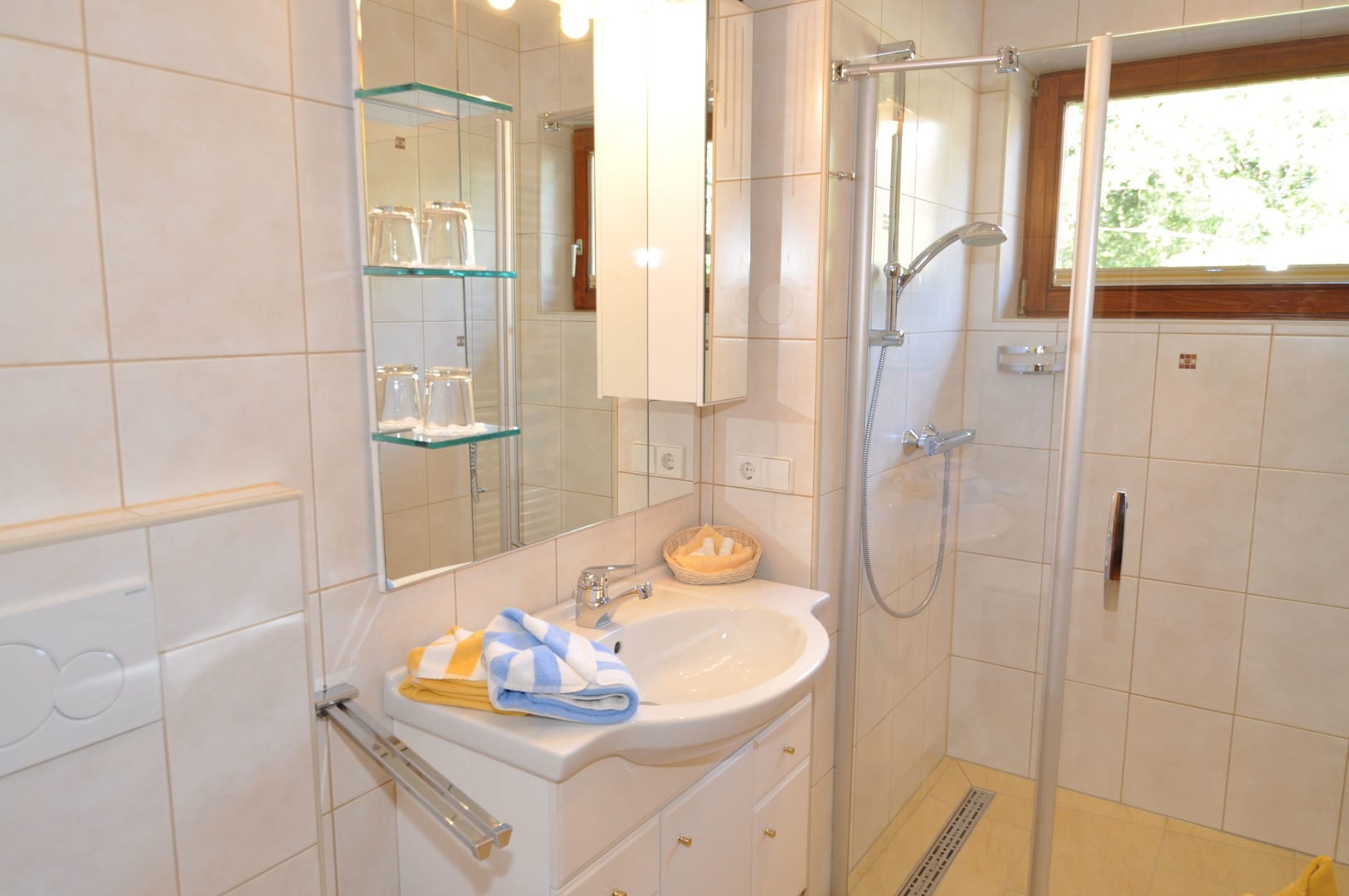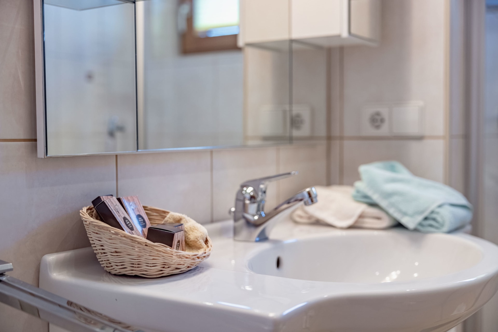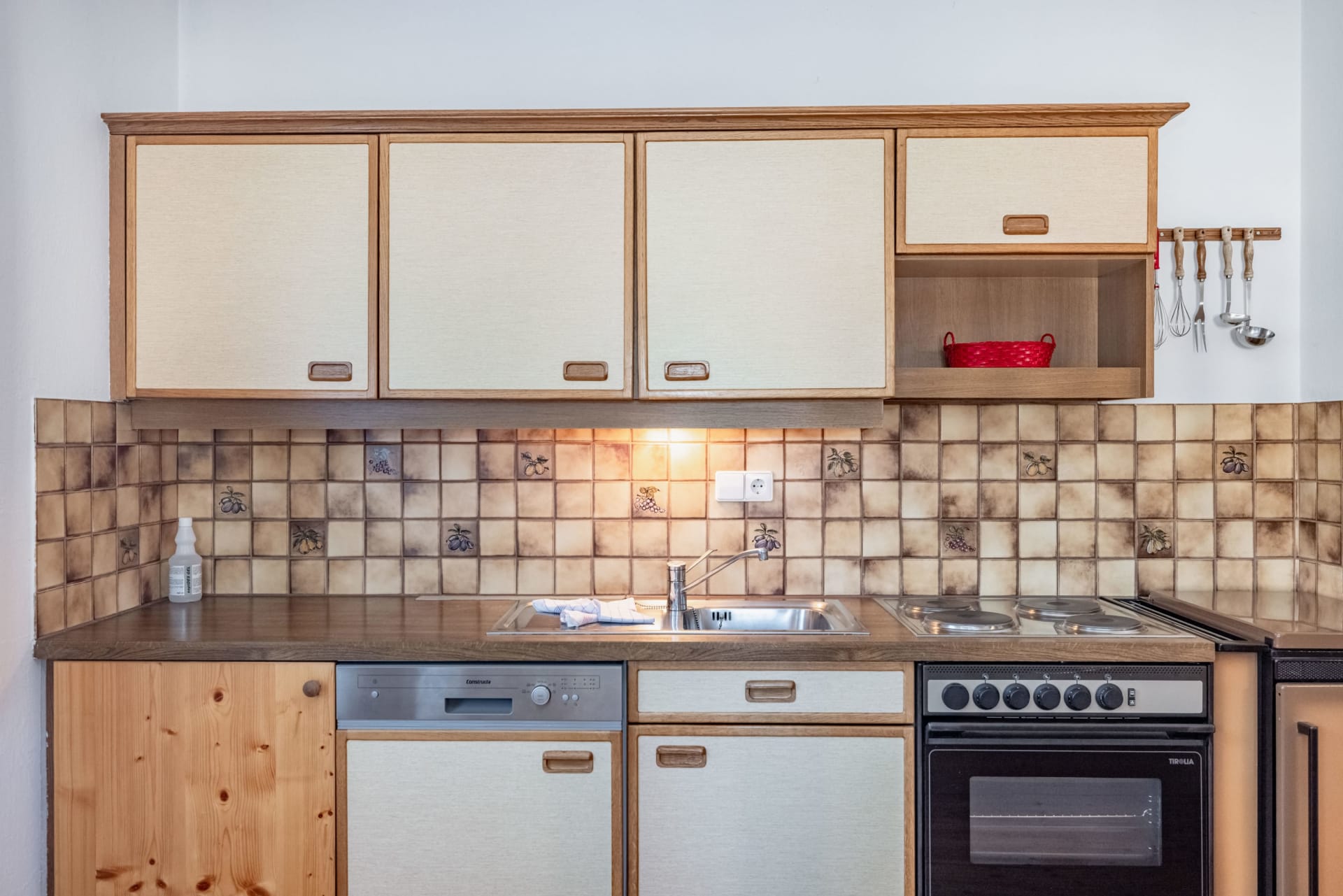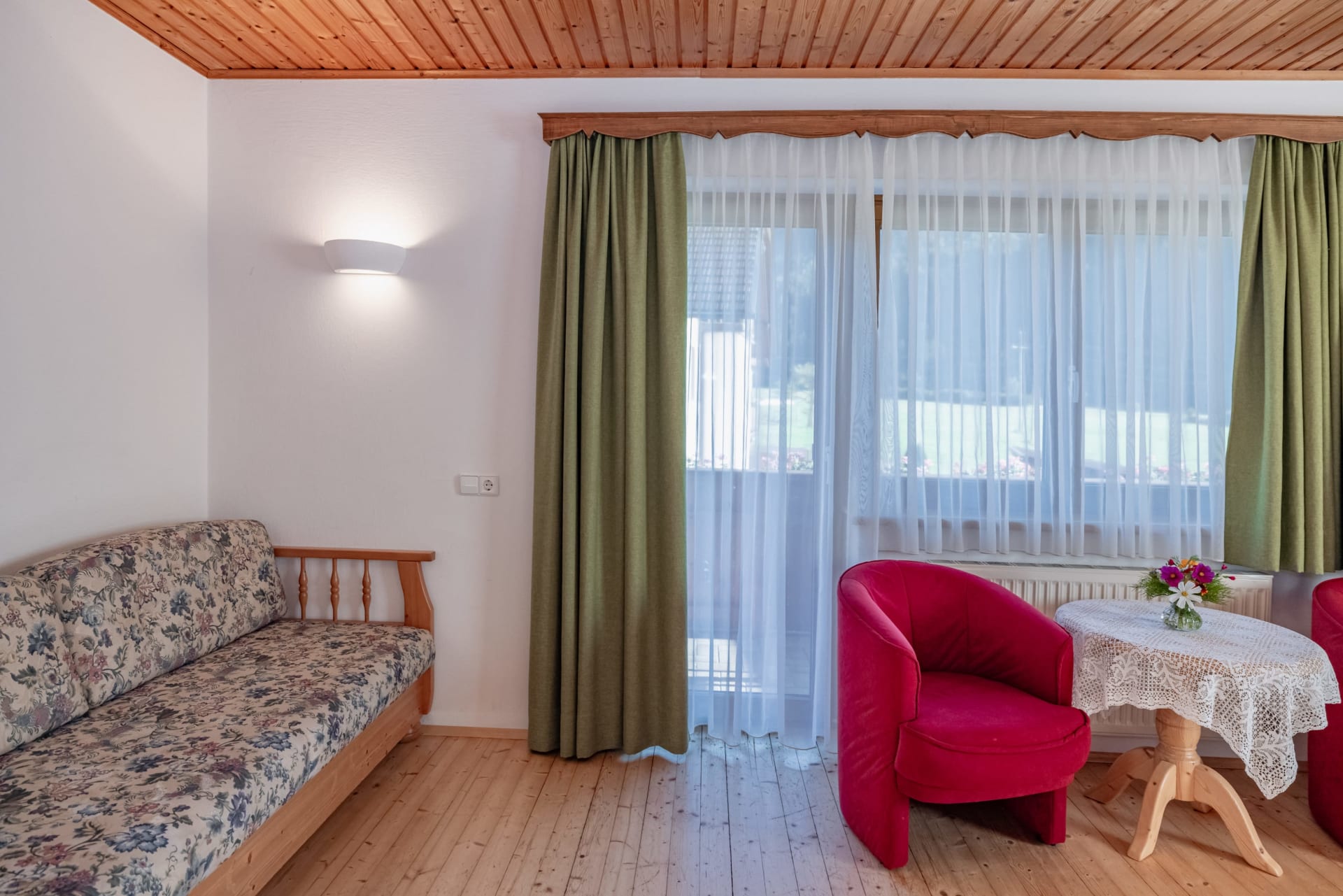 Ferienwohnung mit Balkon westseitig mit Blick durch das breite Gailtal bis zu den Lienzer Dolomiten, 1 Schlafzimmer, separat 1 Wohnzimmer mit Doppel-Liegesofa, kleine Küche, Herd mit Backofen, Geschirrspüler, Kaffeemaschine, Wasserkocher, Bad mit Kosmetikspiegel, Kosmetikartikel und Haarföhn, WC, Vorraum, Safe, Sat-TV.