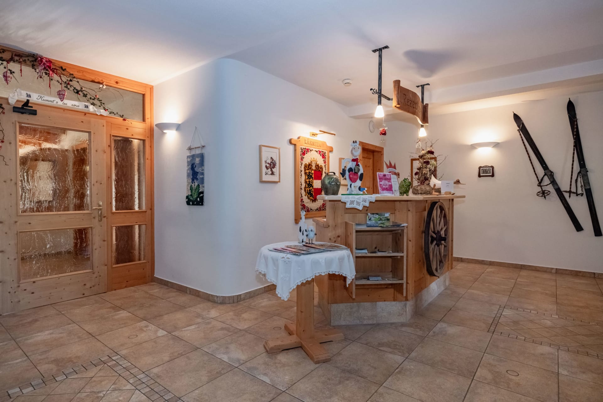 🧖♀️ Wellnessbereich & Leseecke: Lassen Sie sich in unserem Wellnessbereich mit Finnischer Sauna, Sanarium und Wärmebank verwöhnen und erfahren Sie in unserer Leseecke mehr über die Region, Kärntner Landwirtschaft und Kulinarik.