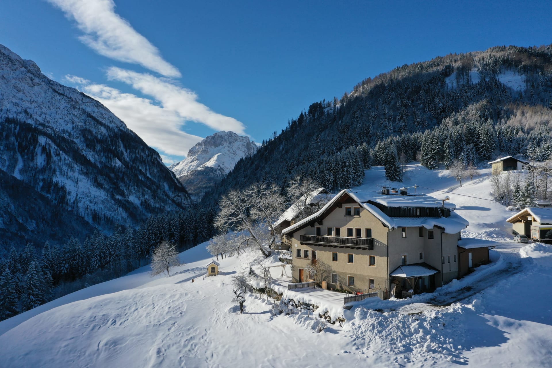 Klare Bergluft, Ruhe und Idylle - zurück zur Natur! Der Lamprechtbauer liegt hoch über dem Bergsteigerdorf Mauthen direkt am Plöckenpass, bietet eine malerische Aussicht über das ganze Tal und ist ein idealer Ausgangspunkt für Wanderungen in den Karnischen Alpen. Ein Kraftort mit dem wohl schönsten Blick über das Untere Lesachtal und Obere Gailtal.
