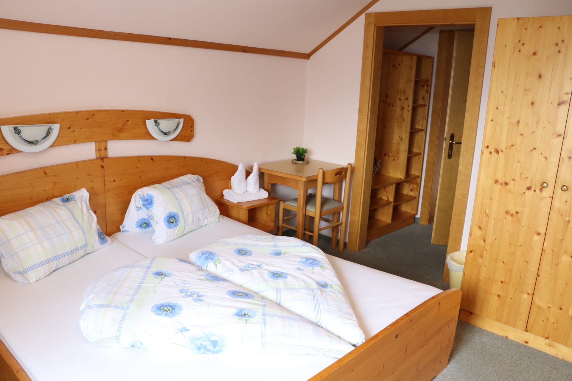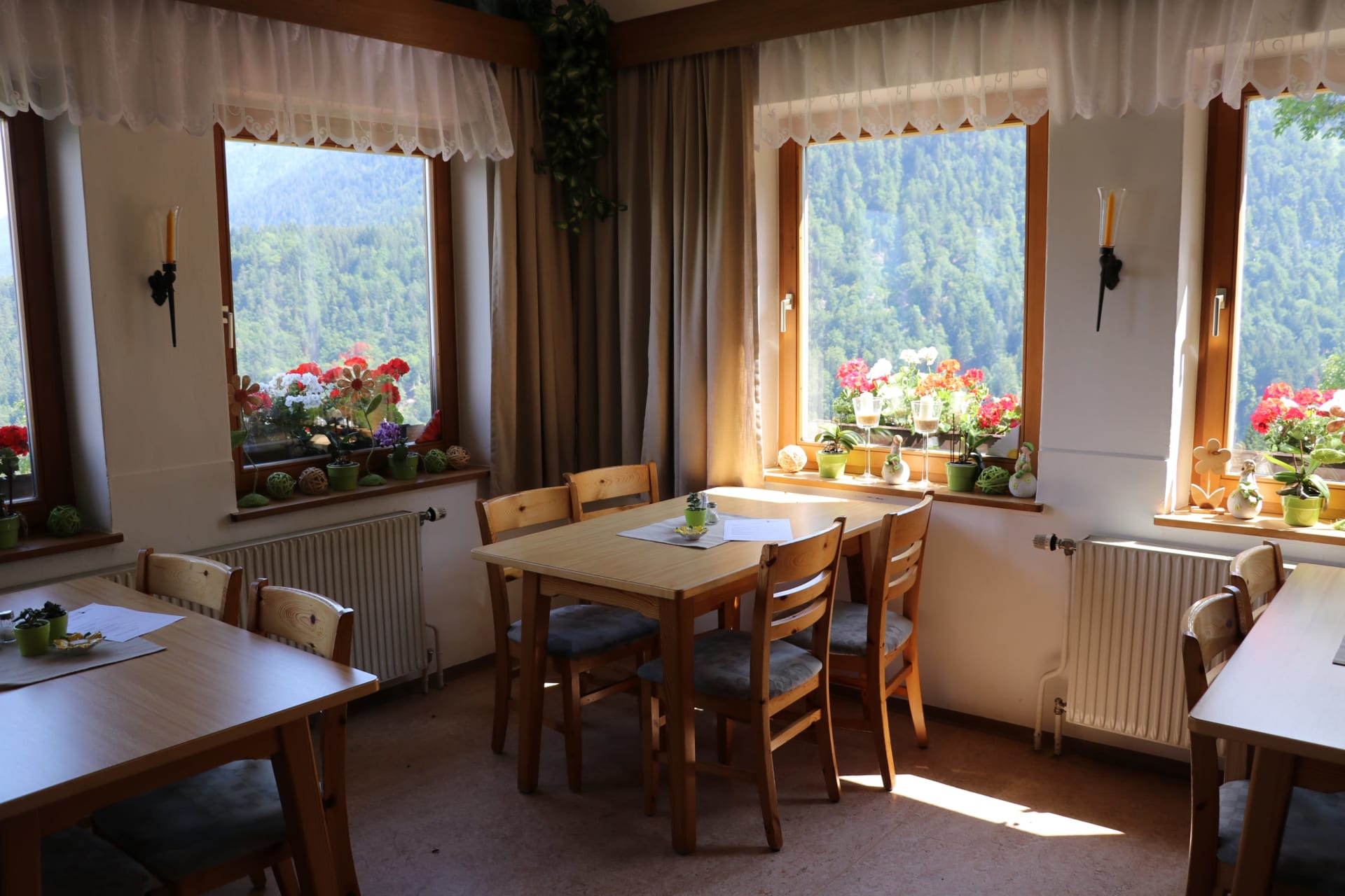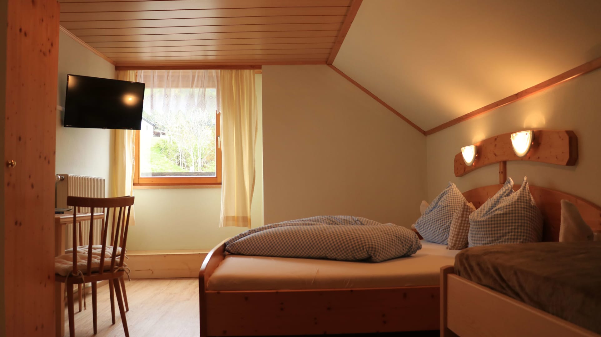 Jedes Zimmer ist mit Naturholzmöbeln ausgestattet und verfügt über ein Doppelbett, eine Sitzecke, Bad mit Dusche, Waschbecken, WC und Vorraum. Die Zimmer nach Osten bieten einen herrlichen Blick auf unser schönes Gailtal. Hier werdet ihr am Morgen von den ersten Sonnenstrahlen wach geküsst. Gegen Westen genießt ihr die Nachmittagssonne mit Blick auf die Mussen.
