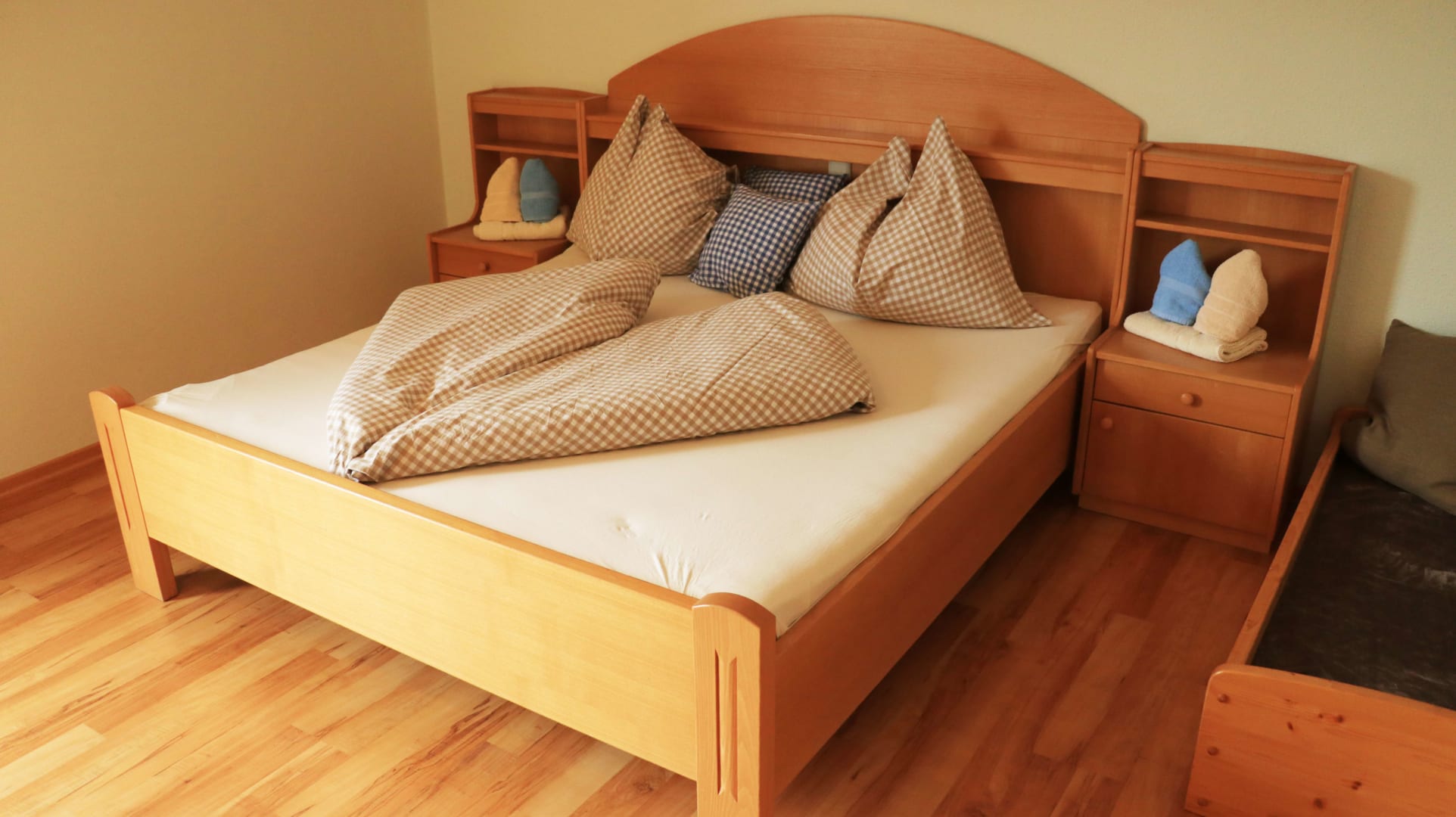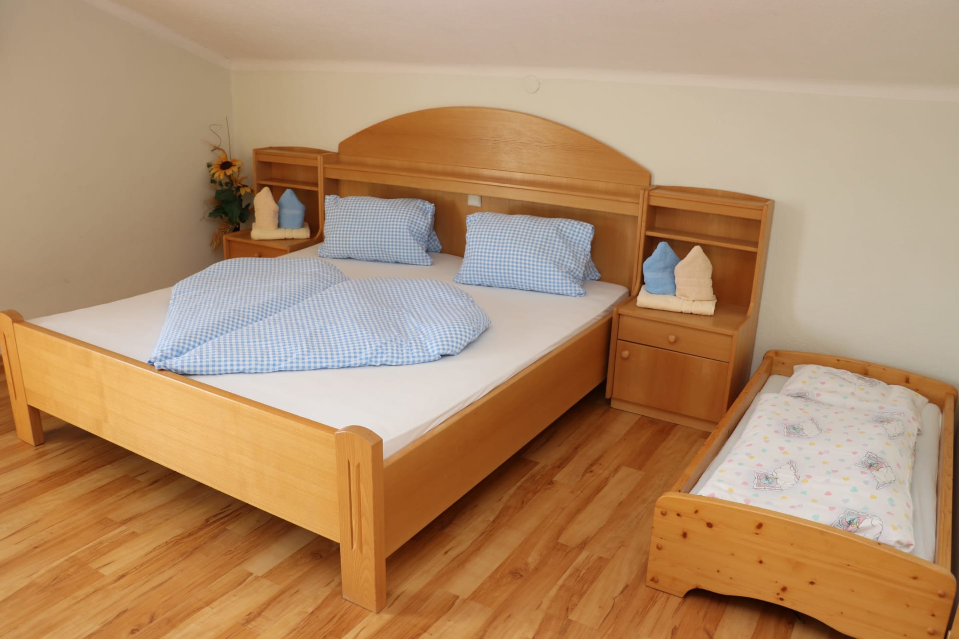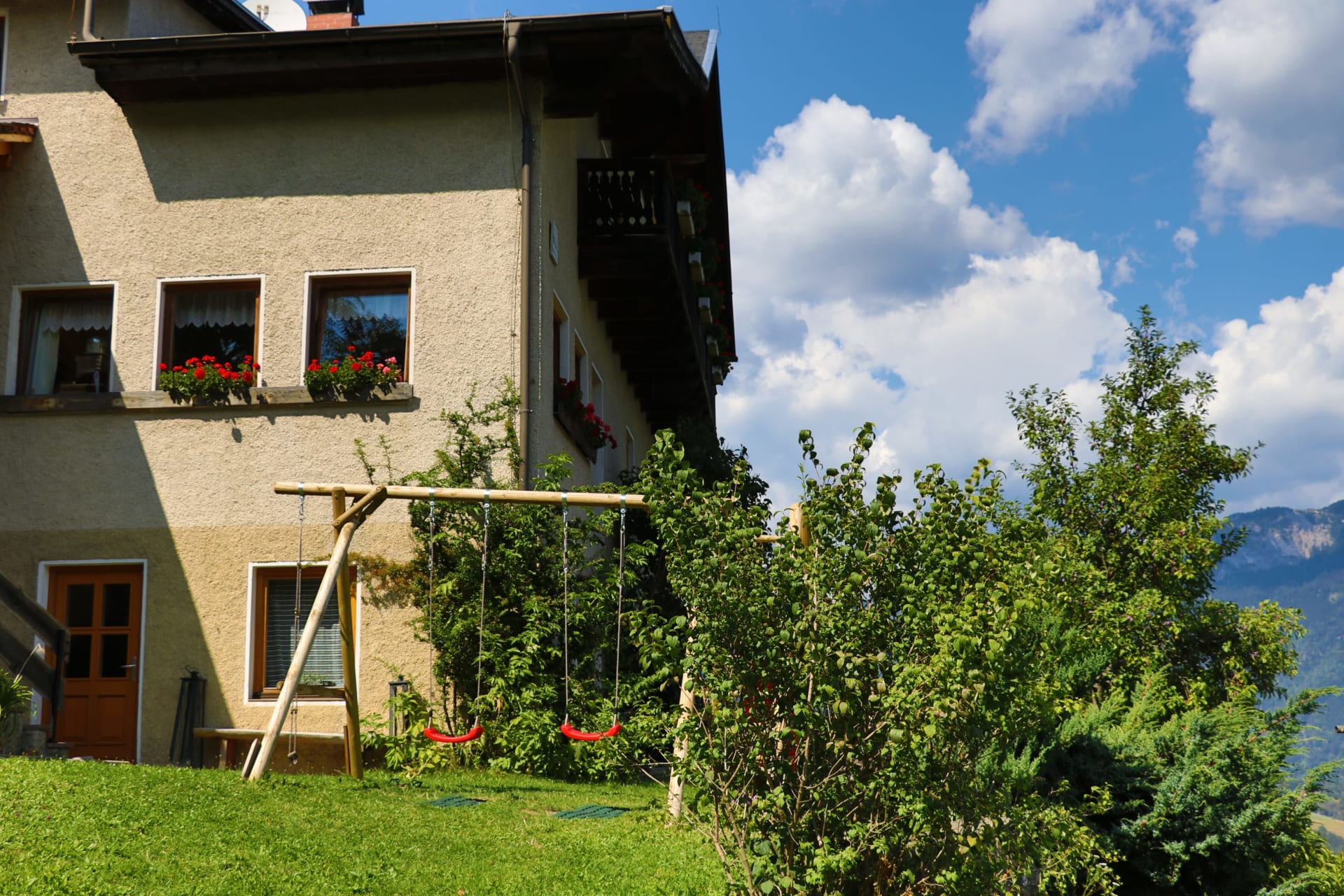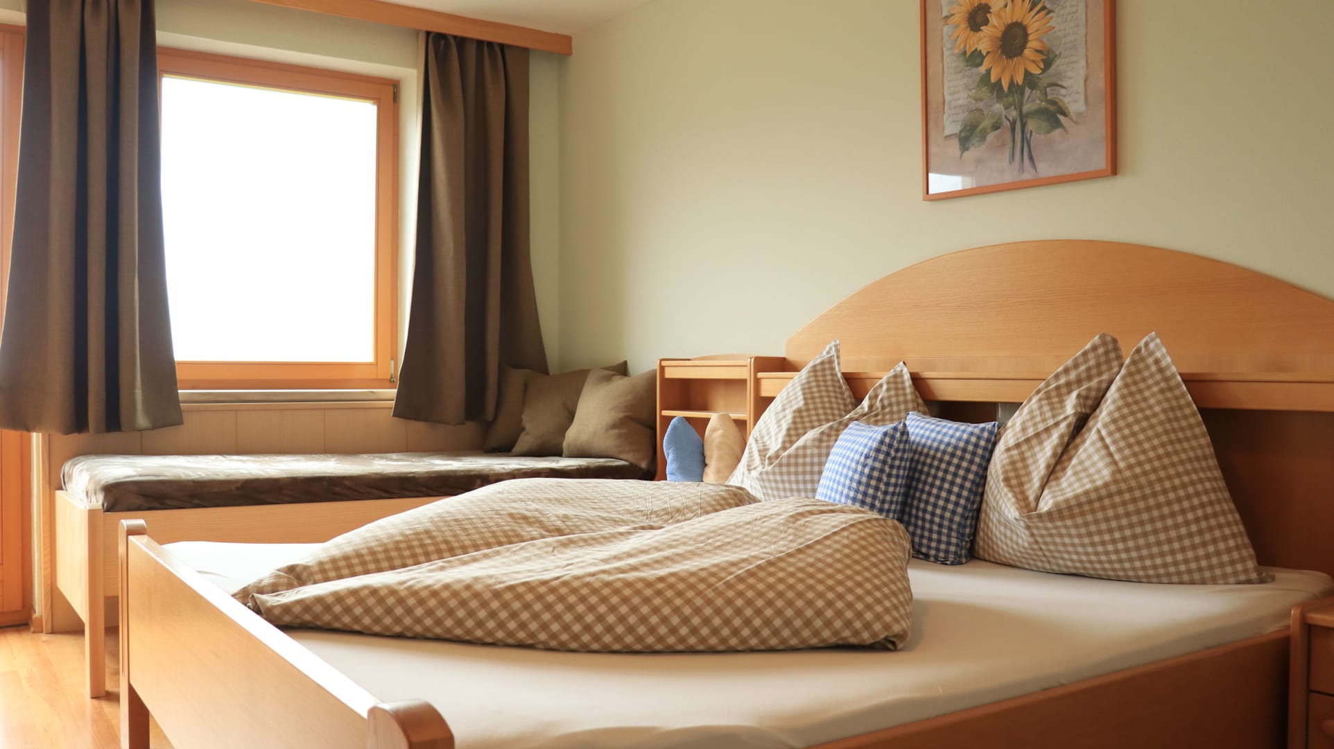 Jedes Zimmer ist mit Naturholzmöbeln ausgestattet und verfügt über ein Doppelbett, eine Sitzecke, Bad mit Dusche, Waschbecken, WC und Vorraum. Die Zimmer nach Osten bieten einen herrlichen Blick auf unser schönes Gailtal. Hier werdet ihr am Morgen von den ersten Sonnenstrahlen wach geküsst. Gegen Westen genießt ihr die Nachmittagssonne mit Blick auf die Mussen.