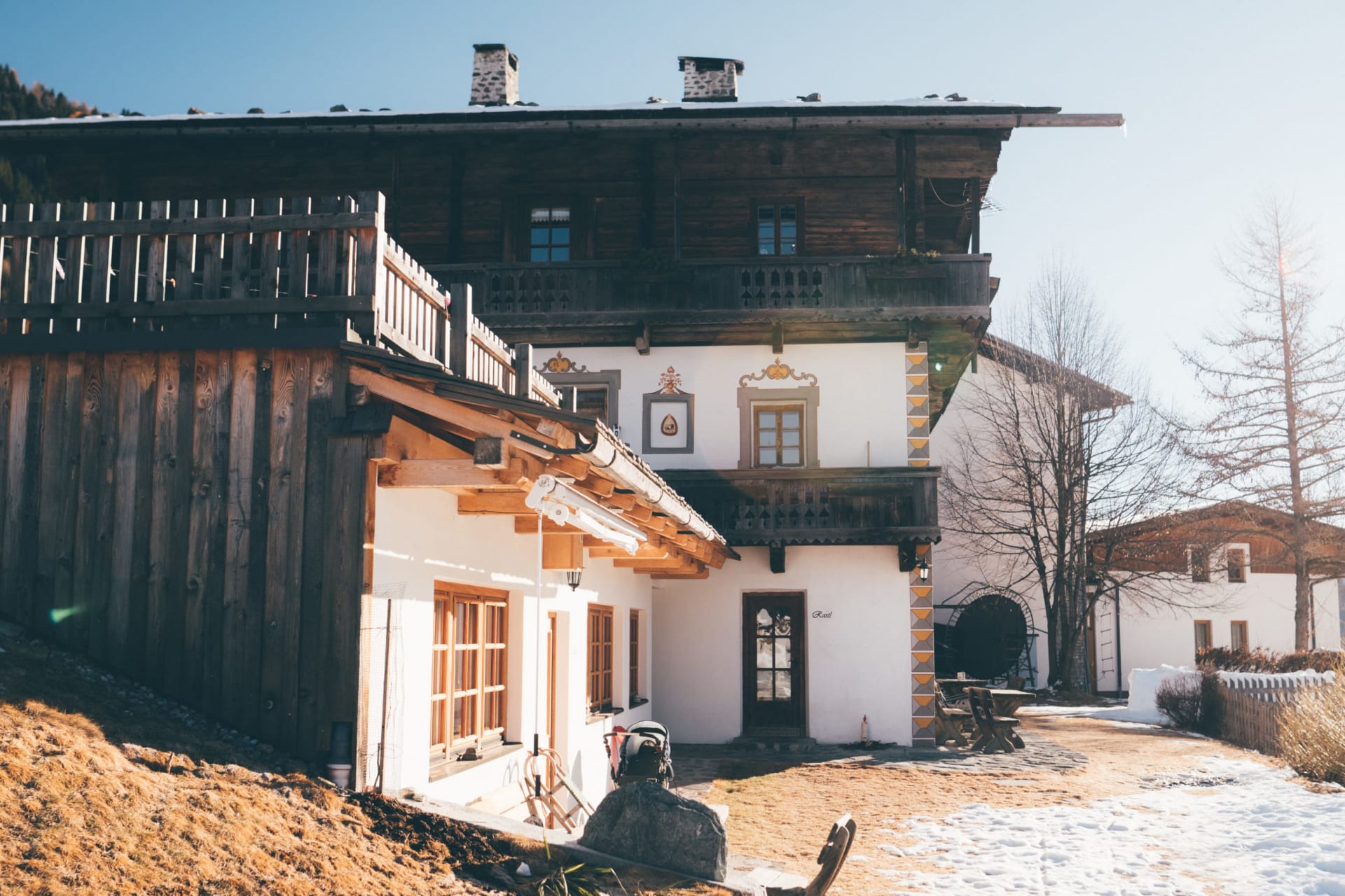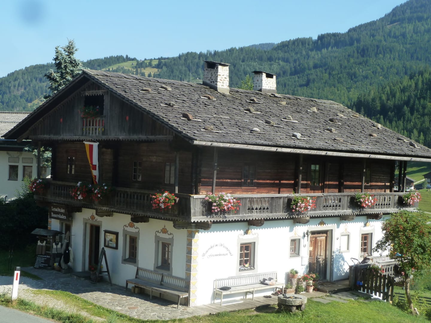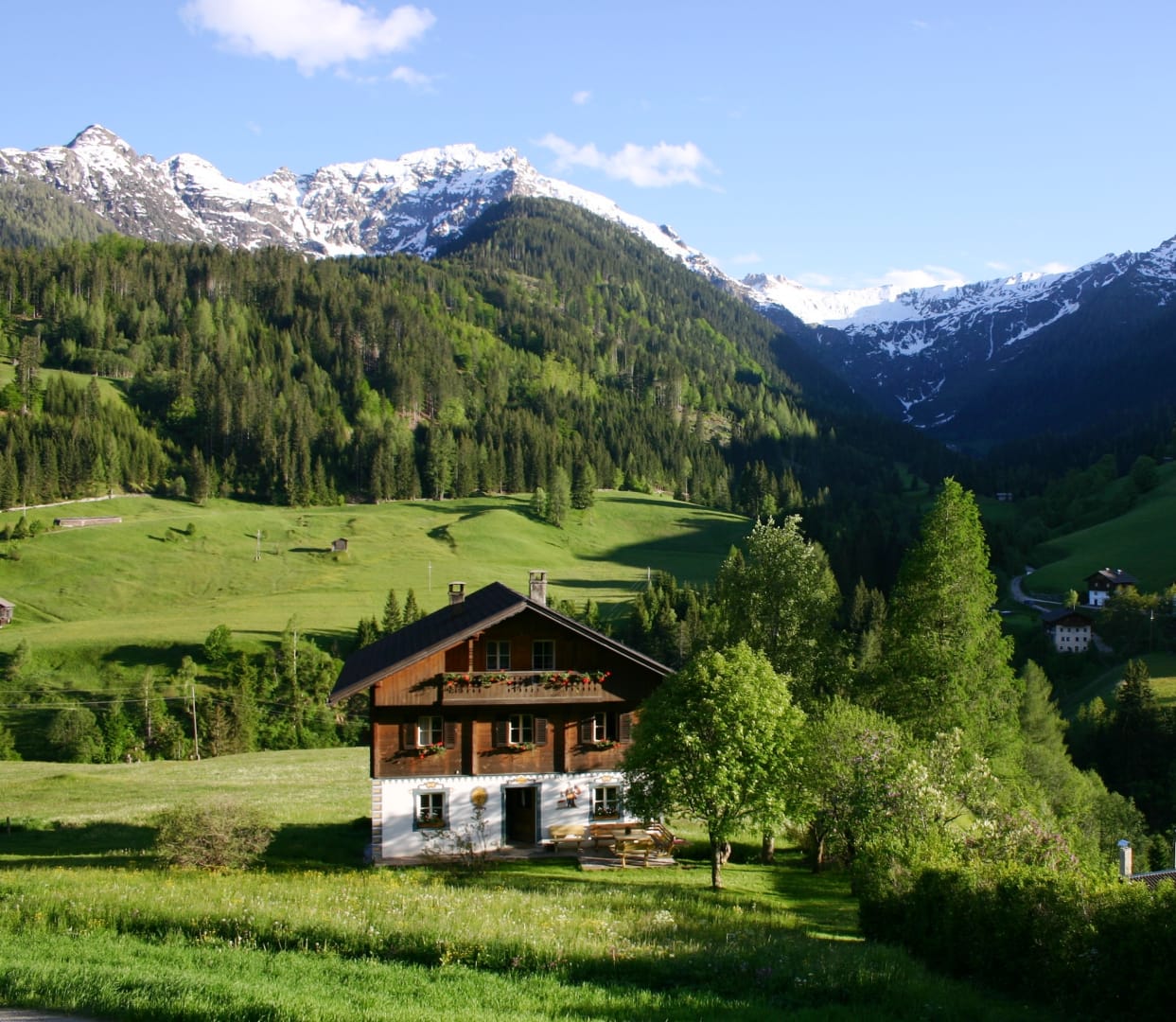 Zwei heimelige Wohnhäuser mit der schönen Lesachtaler Lüftlmalerei, viel Platz rundherum im schönsten Wiesengrund, ein Laufstall mit großem Weidezaun – da fühlen sich Mensch und Tier so richtig wohl.