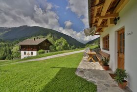 Zwei heimelige Wohnhäuser mit der schönen Lesachtaler Lüftlmalerei, viel Platz rundherum im schönsten Wiesengrund, ein Laufstall mit großem Weidezaun – da fühlen sich Mensch und Tier so richtig wohl.