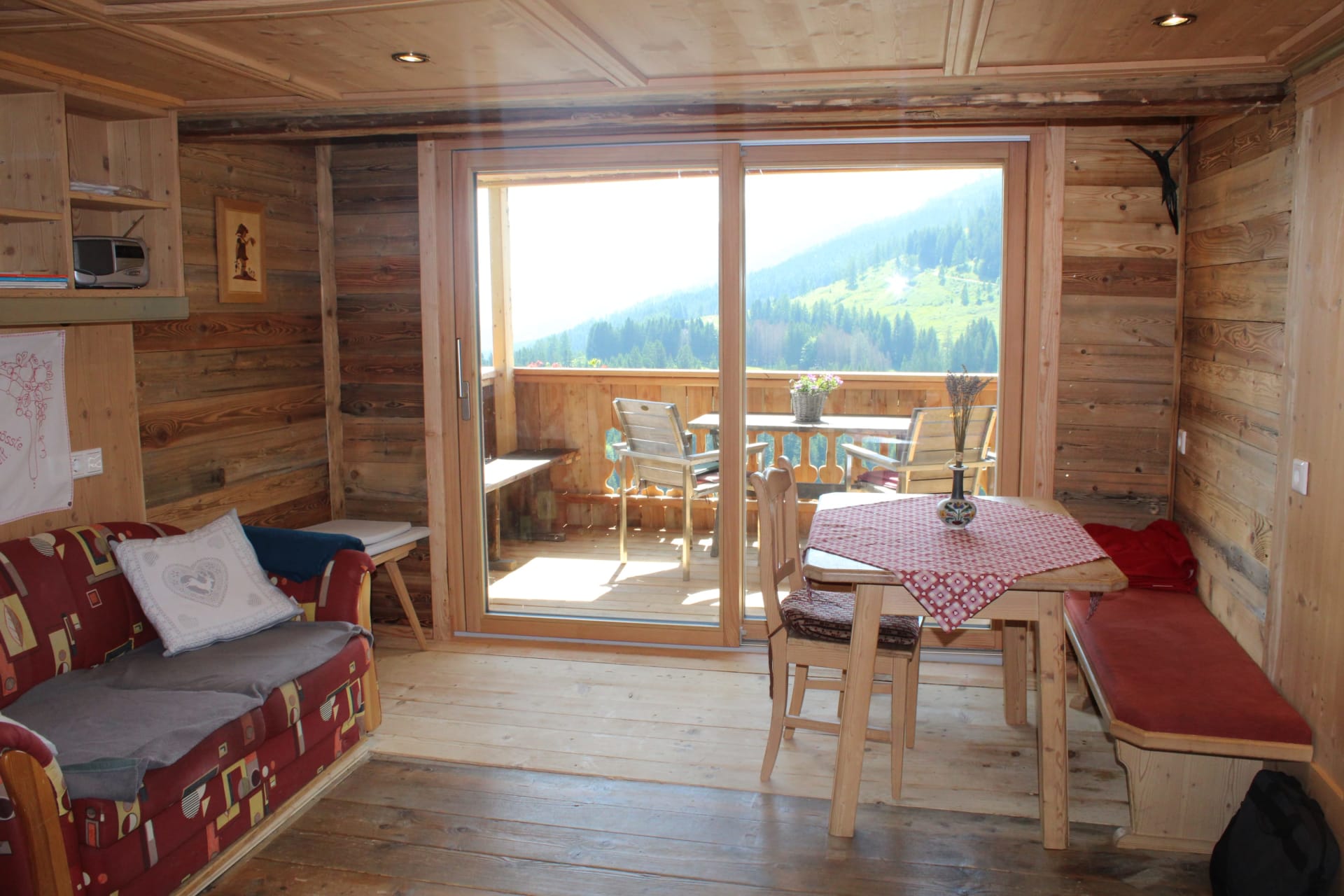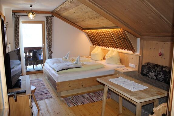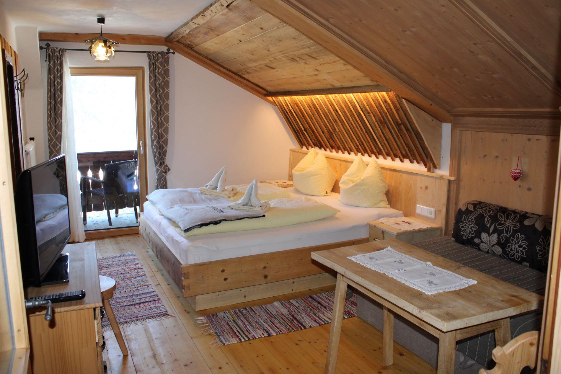 Stellen Sie sich vor, sie liegen in einer duftenden Bergwiese voll Blumen und Kräutern und atmen entspannend Düfte vom Berg-Heu ein. Das Ambiente des Jahrhundert Jahre alten Bauernhofes, die natürlichen Materialien, sowie das Altholz, erwirken ein angenehmes Raumklima und Geborgenheit. Der grandiose Ausblick vom Balkon in die herrliche Bergwelt verzaubert und schafft so einen absoluten Wohlfühlfaktor.