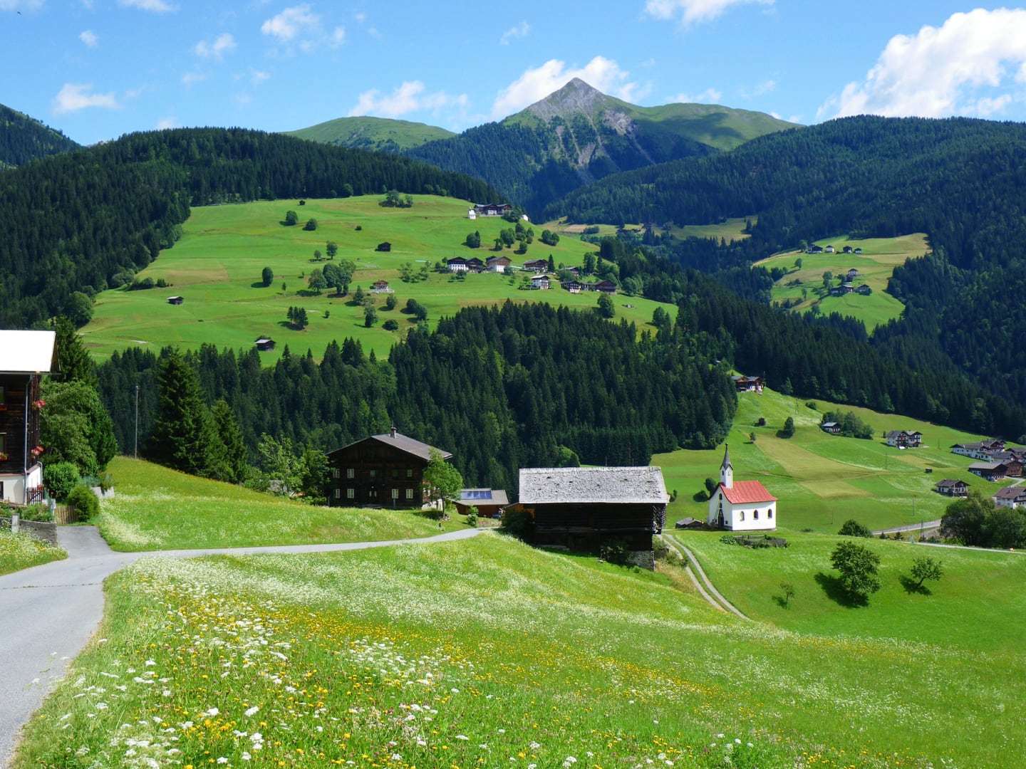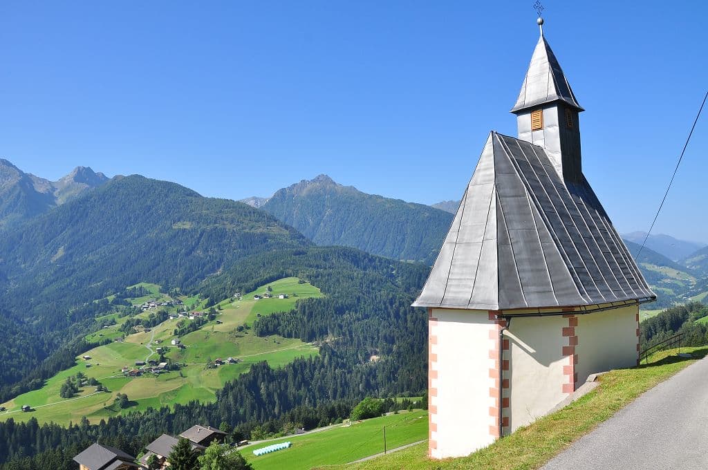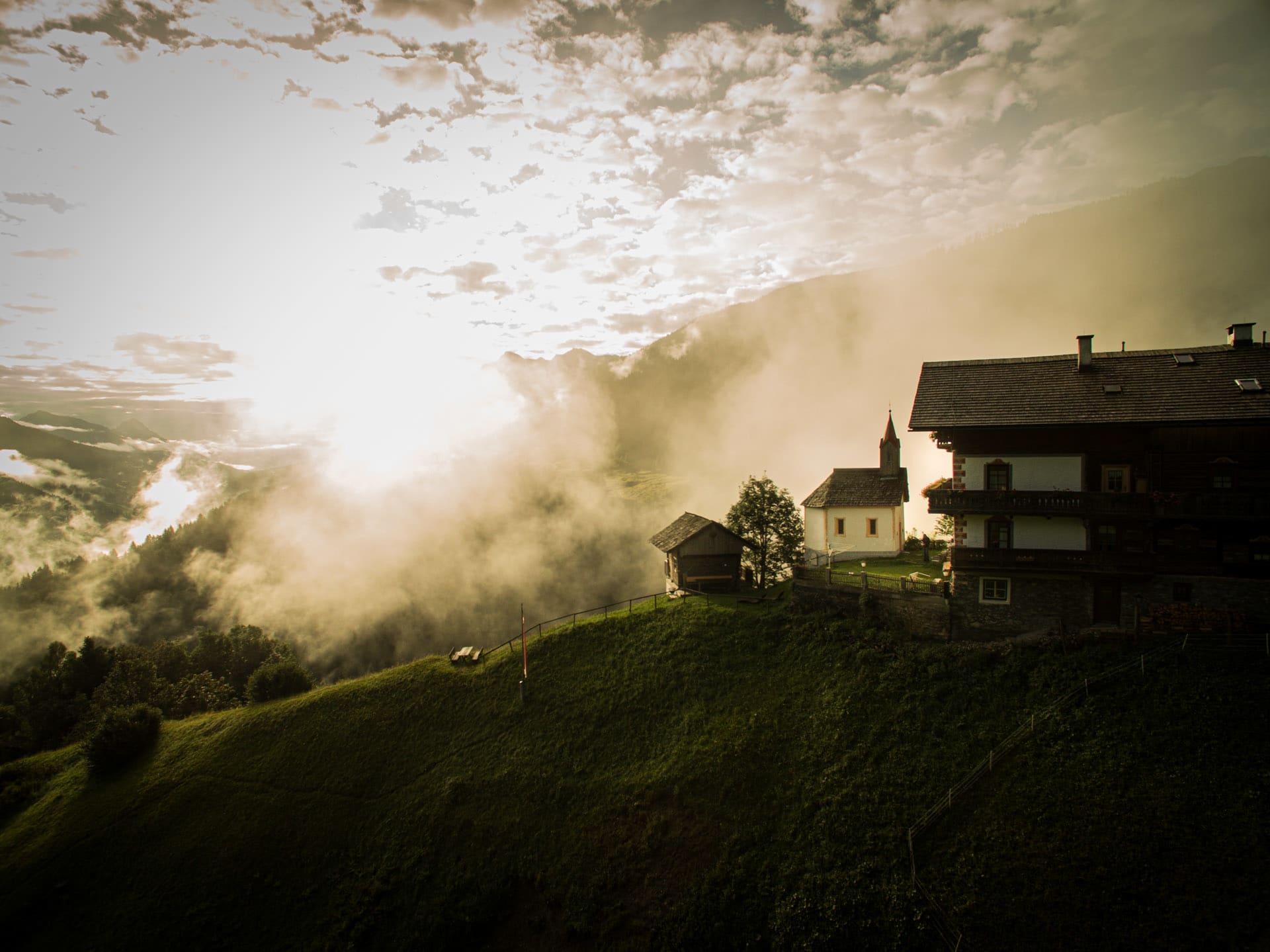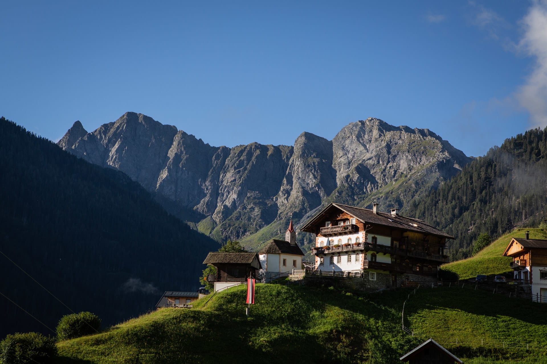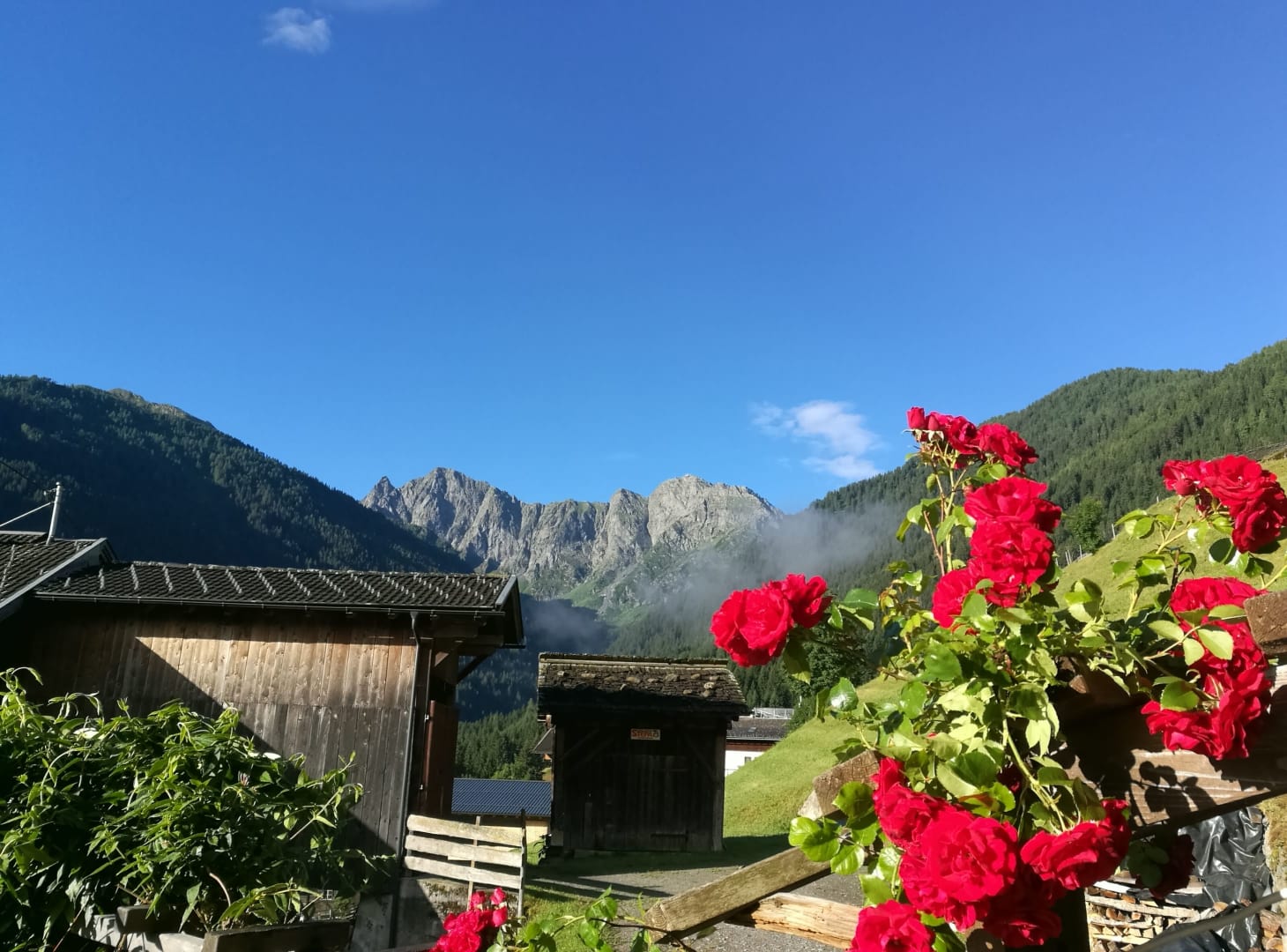 Morgens schon wird man von der Sonne geweckt, mit Blick in die Karnischen Alpen.