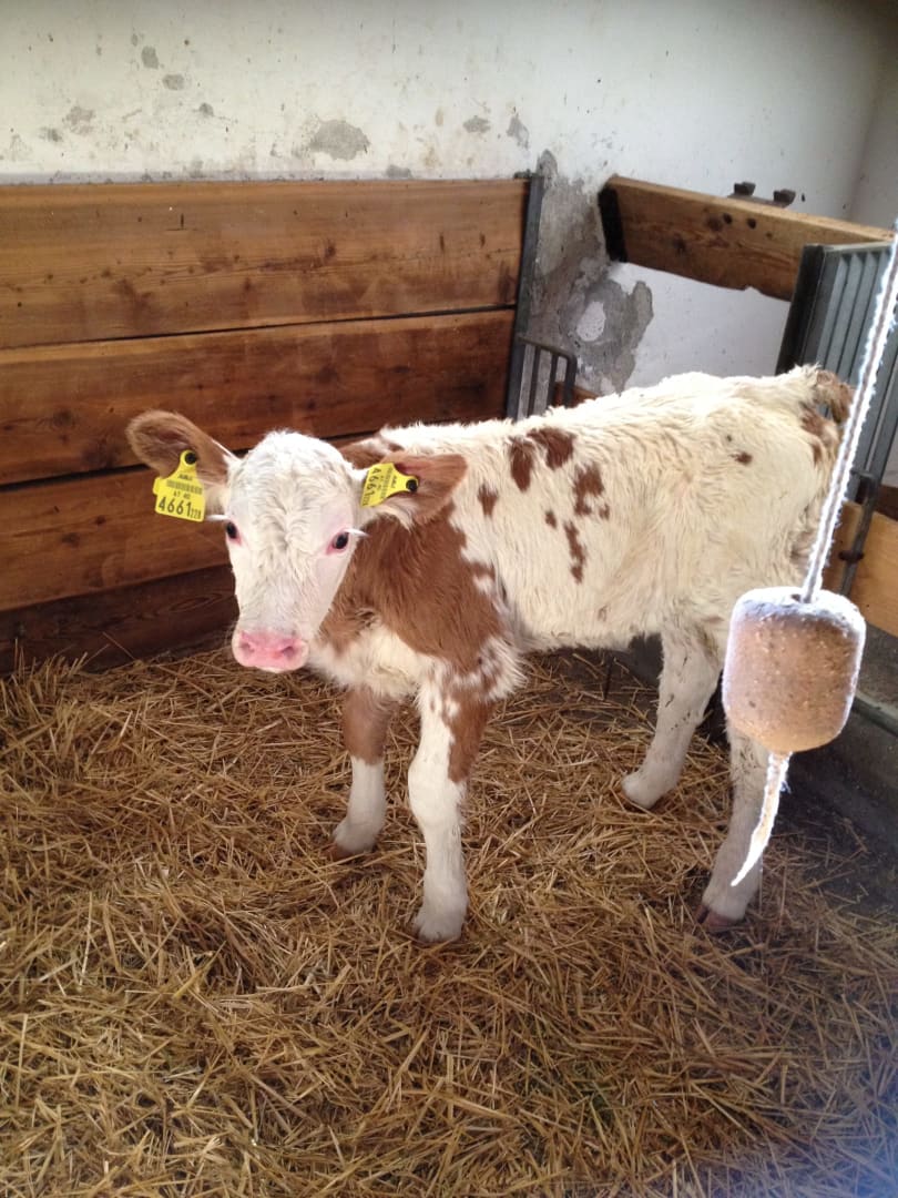 Im Stall ist es angenehm warm. Unsere Kühe, Schweine, Hasen und Katzen genießen die Winterruhe. Möchtest du beim Füttern der Tiere helfen?