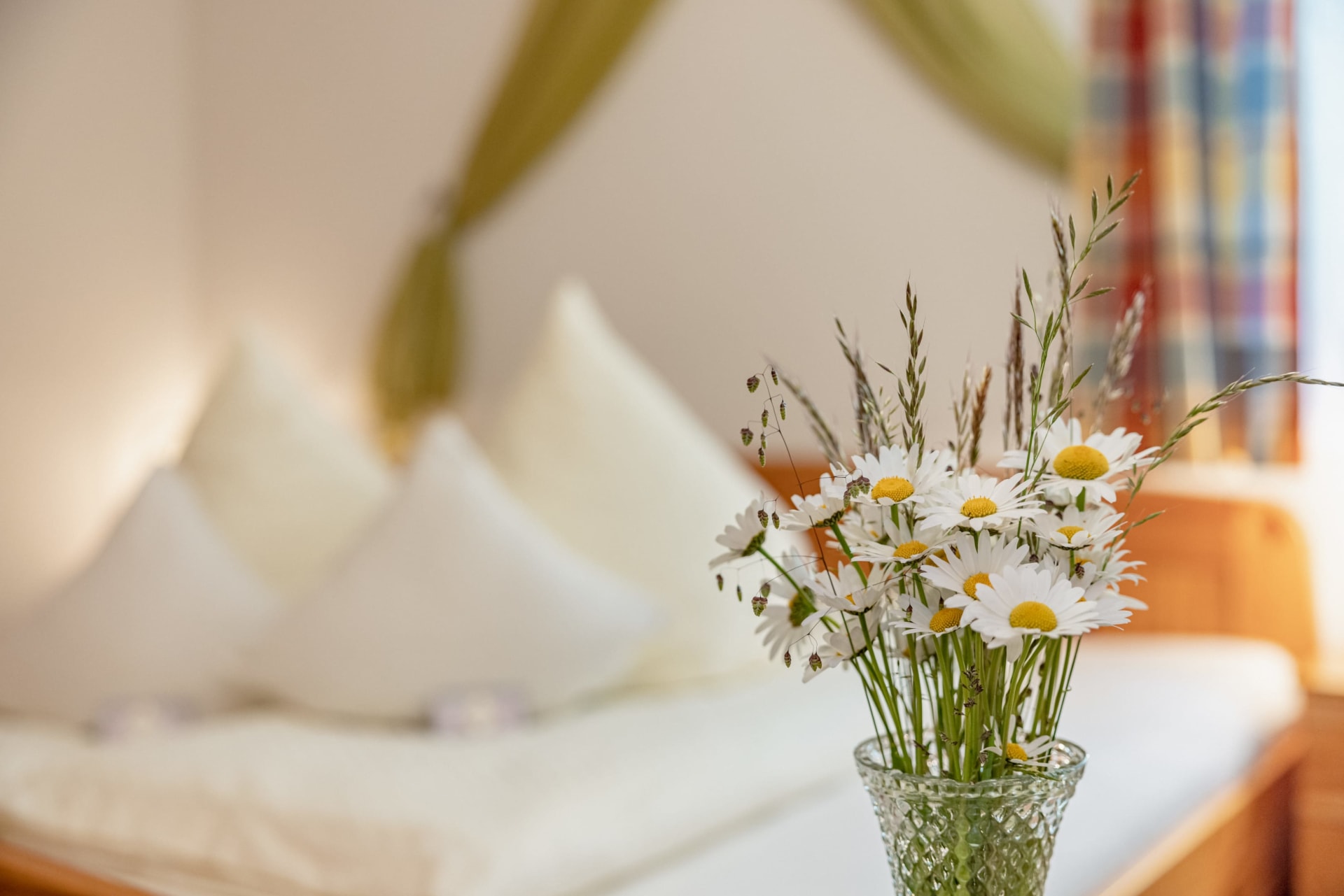 In einer der drei Ferienwohnungen für 2 - 4 Personen, liebevoll mit Vollholz und einem gemütlichen Holzofen eingerichtet. Jede Wohnung hat einen eigenen Balkon. Maximal befinden sich 10 Gäste auf unserem Hof.