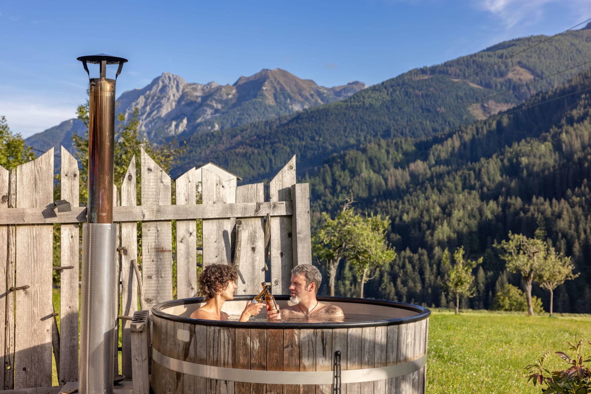 Nach aktiven Stunden in der Natur genießen Sie Wellness pur: unsere Sauna mit Infrarot- & Biofunktion, die Feuerwasser-Wanne auf der Terrasse und Ruhebereiche mit Ausblick sorgen für tiefe Entspannung.