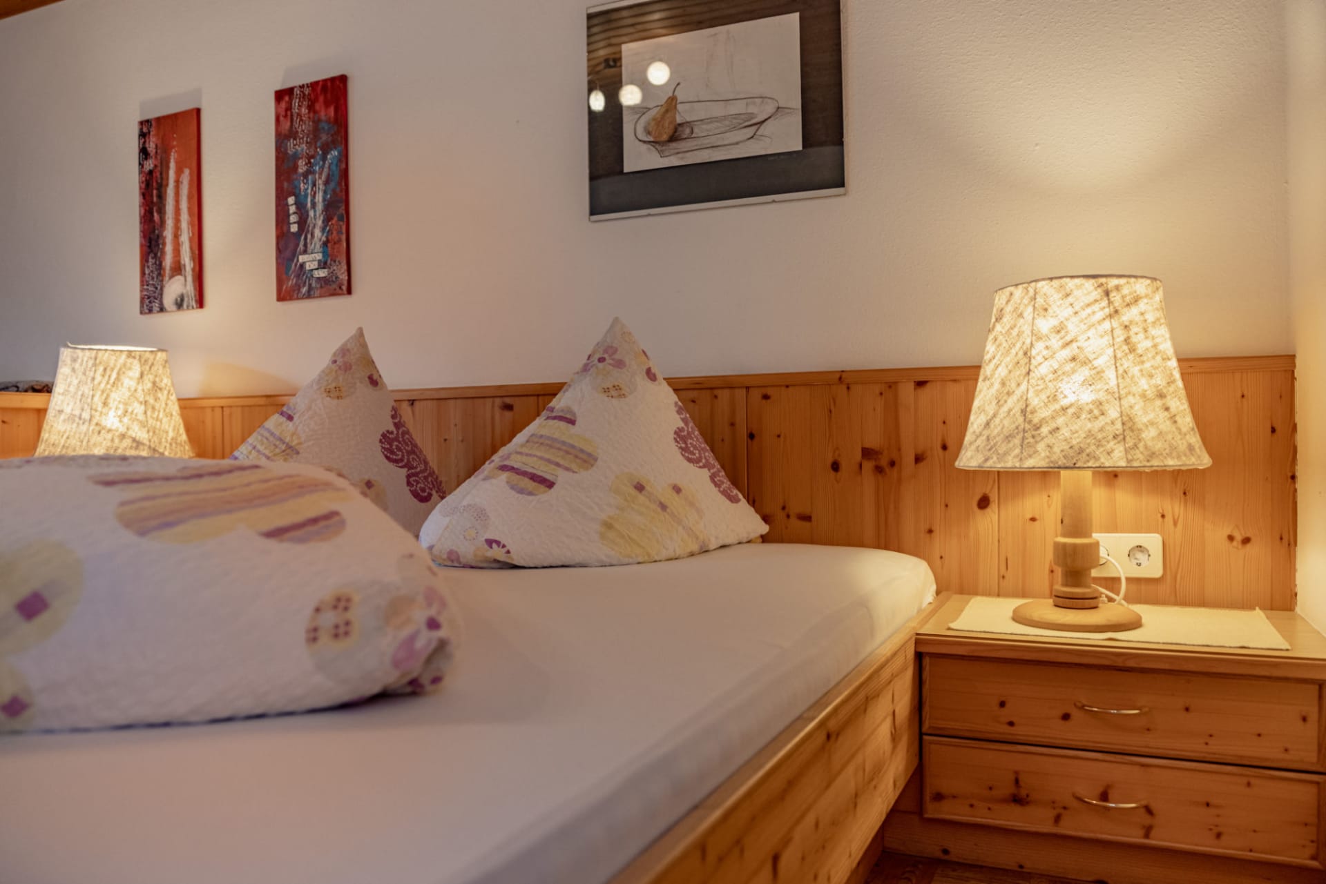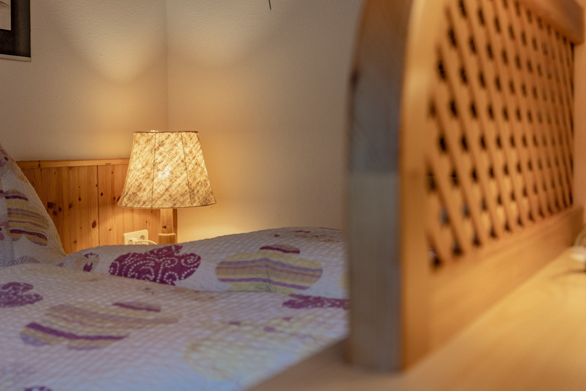 Die 45 m² große Wohnung „Fichte“ befindet sich im 2. Obergeschoss und verfügt über einen Balkon mit Ausblick auf die umliegende Bergwelt. Gestaltet in heimeligem Fichtenholz, bietet die Wohnung ein warmes, alpines Wohngefühl. Sie ist ideal für 2 bis 5 Personen und verfügt über zwei Schlafzimmer – eines davon als Kinderzimmer mit Hochbett. Dazu kommen ein Badezimmer mit Dusche und WC sowie eine voll ausgestattete Küche.