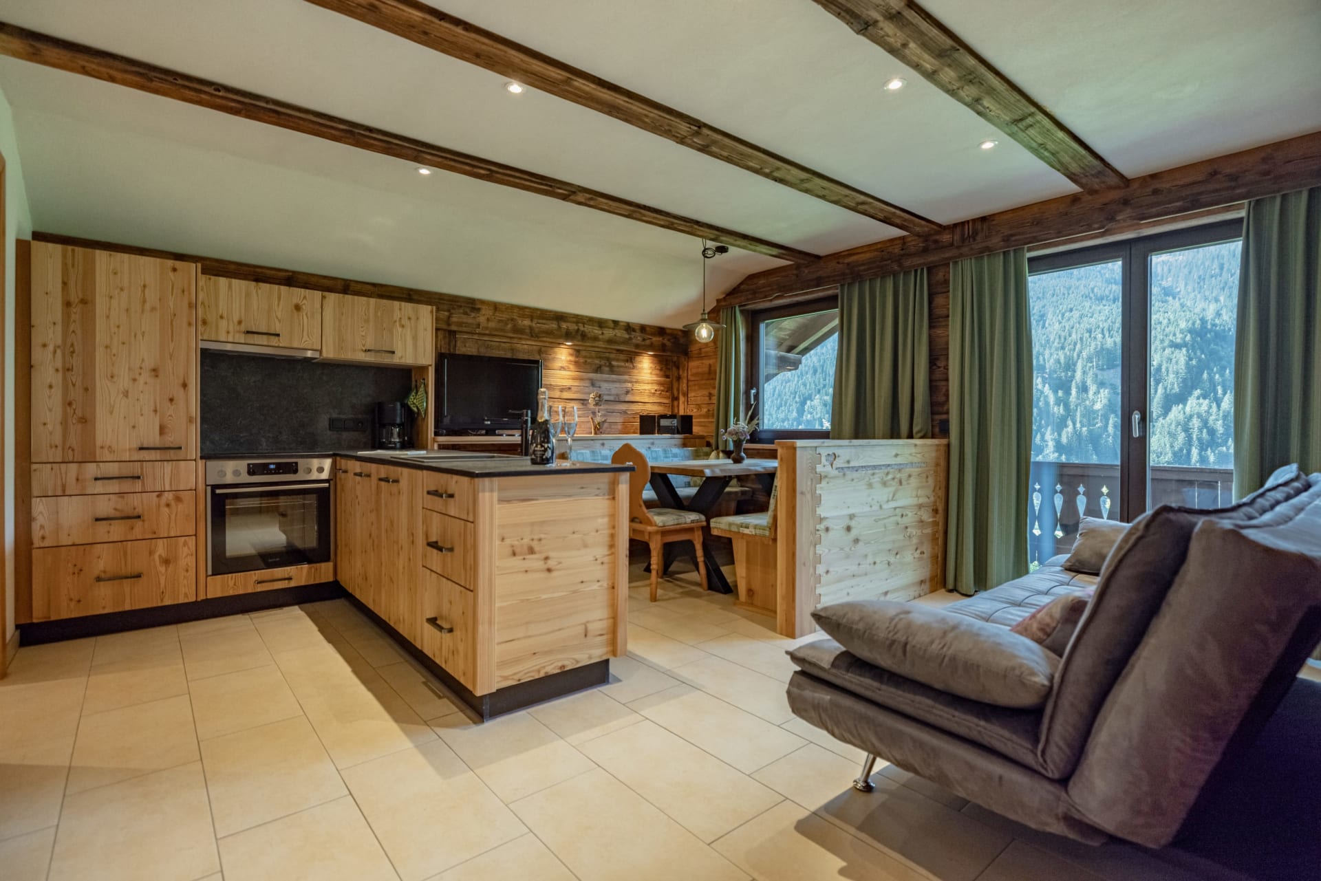 Die ca. 65 m² große Wohnung „Sommer“ bietet Platz für bis zu 5 Personen und ist ideal für Familien oder Freunde. Zwei gemütliche Schlafzimmer sorgen für erholsamen Schlaf, während der großzügige Wohnbereich mit Zugang zu zwei Balkonen traumhafte Ausblicke auf die Bergwelt bietet. Das Badezimmer ist mit Dusche und Badewanne ausgestattet, zusätzlich gibt es ein separates WC. Die voll ausgestattete Küche (mit Herd, Backofen, Kühlschrank, Geschirrspüler, Kaffeemaschine etc.) lädt zum Kochen ein. WLAN steht kostenlos zur Verfügung.
