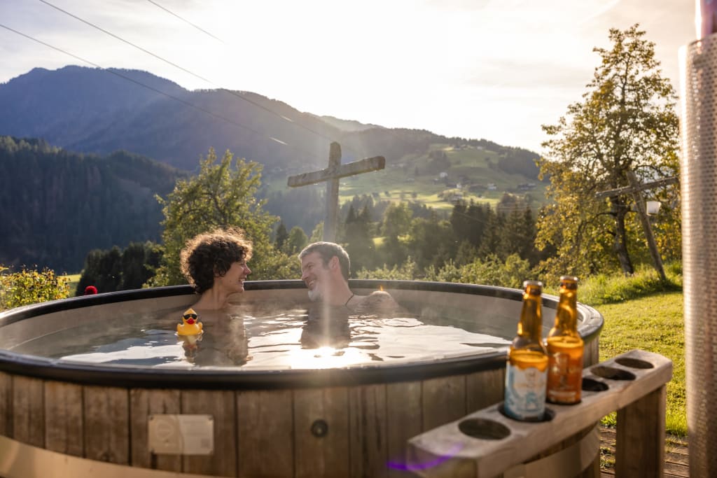 Nach aktiven Stunden in der Natur genießen Sie Wellness pur: unsere Sauna mit Infrarot- & Biofunktion, die Feuerwasser-Wanne auf der Terrasse und Ruhebereiche mit Ausblick sorgen für tiefe Entspannung.